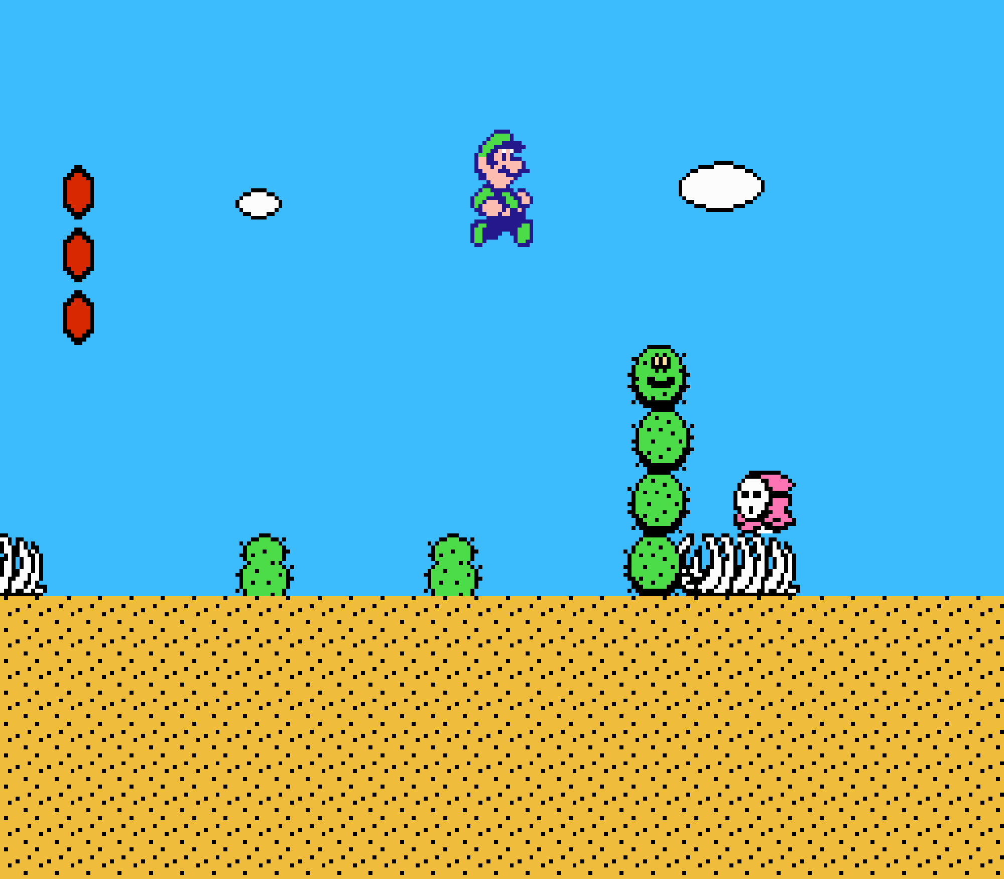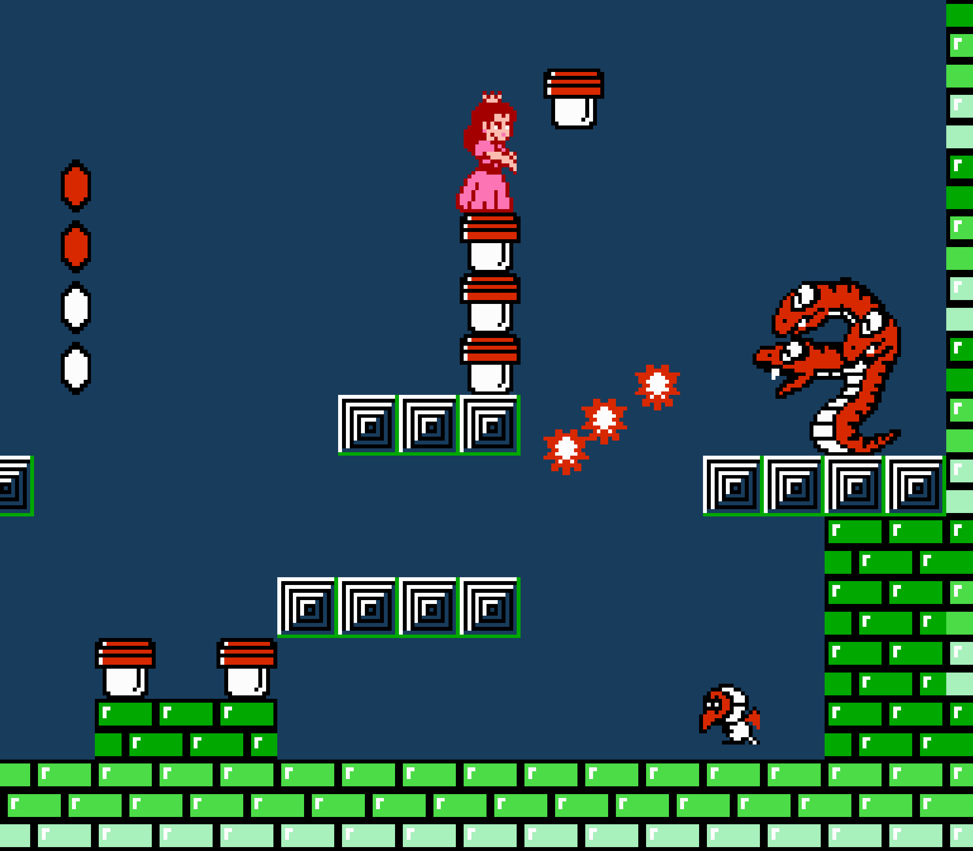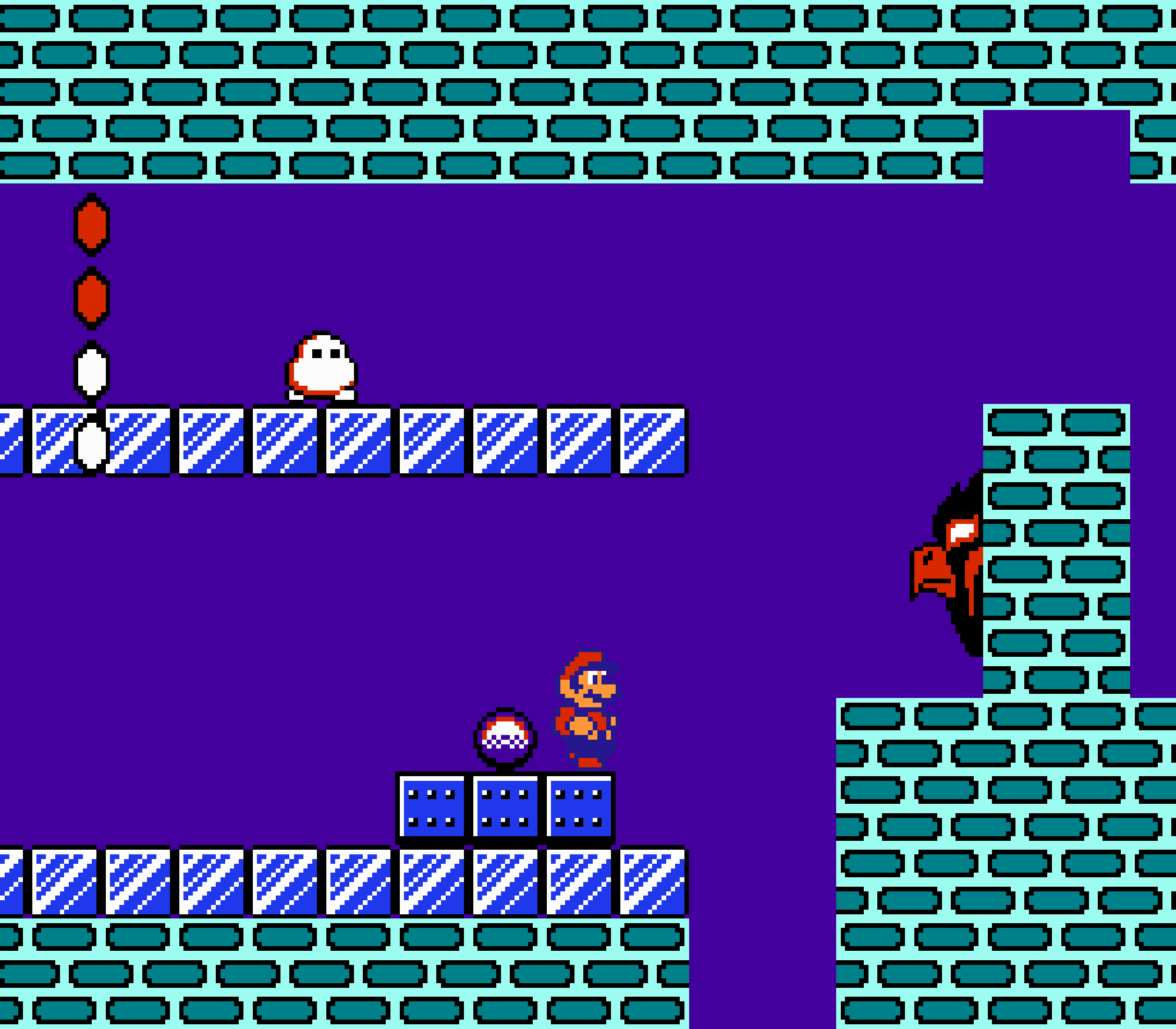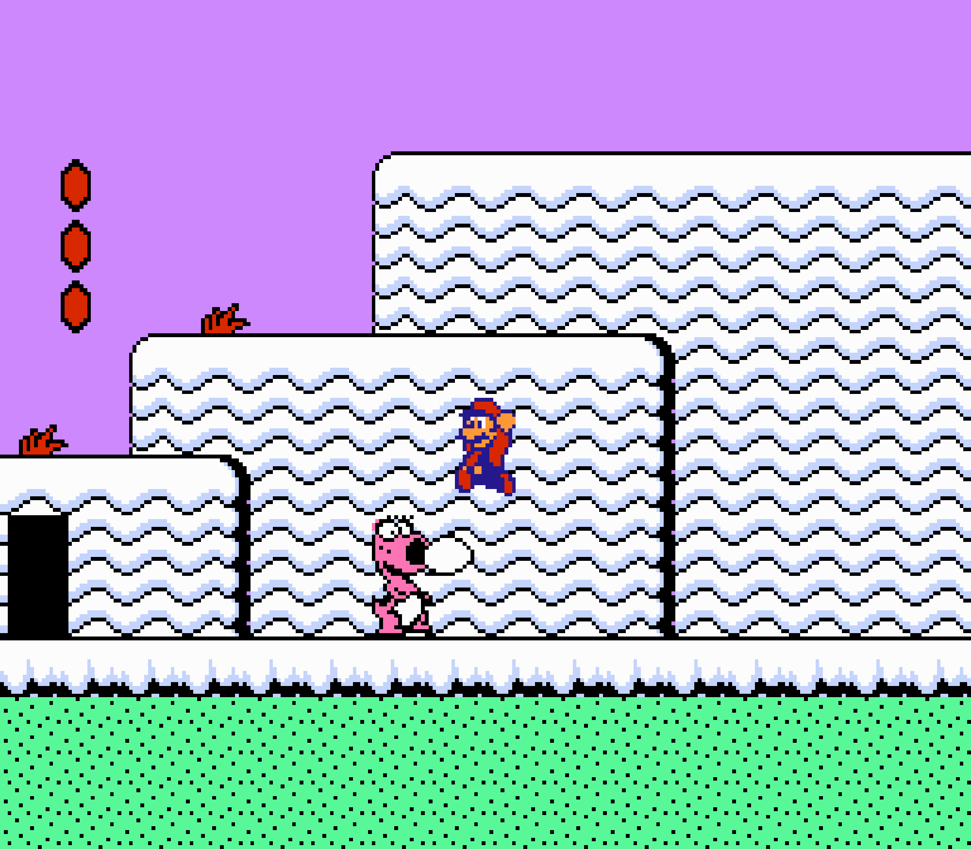 Tout d'abord il faudra à chaque tableau choisir son personnage parmi les 4 et les ennemis ne sont plus des Koopa troopas mais divers animaux, certes mignons mais qui n'ont plus rien à voir avec les fantômes, champignons et tortues d'autrefois. Le boss final est d'ailleurs un crapaud géant nommé Warp. Les autres boss passent d'une souris géante à un serpent à 3 têtes, mais le plus récurent n'est autre que Birdo, cette étrange bestiole qui nous balance des oeufs avec sa propre bouche (?). Heureusement qu'il y a Mario parce qu'on se demande bien où est passé son univers... Pour en revenir à nos 4 personnages jouables, on aura donc le choix entre Mario, Luigi, Toad et la Princesse Peach. Loin d'un simple changement de sprite, chaque perso à ses petites facultés bien à lui. La préférée de tous, la Princesse, pourra voler un court instant, Toad est le seul à courir à la même vitesse lorsqu'il porte quelque chose, Luigi saute plus haut que tous les autres mais est complètement injouable à cause de son inertie, et enfin Mario reste le personnage le plus équilibré de la bande.