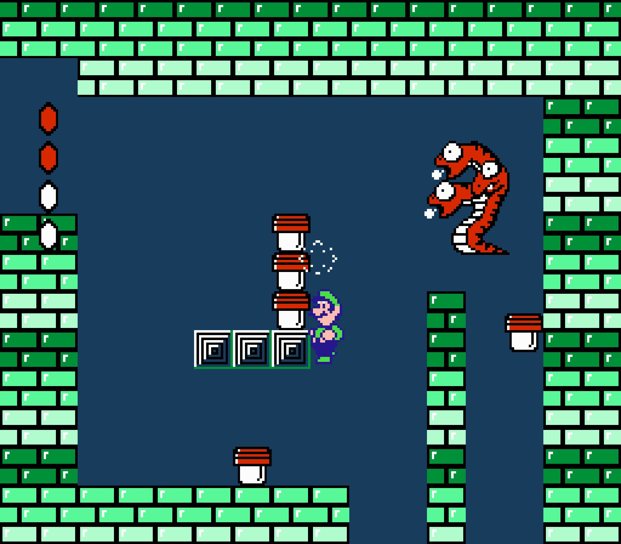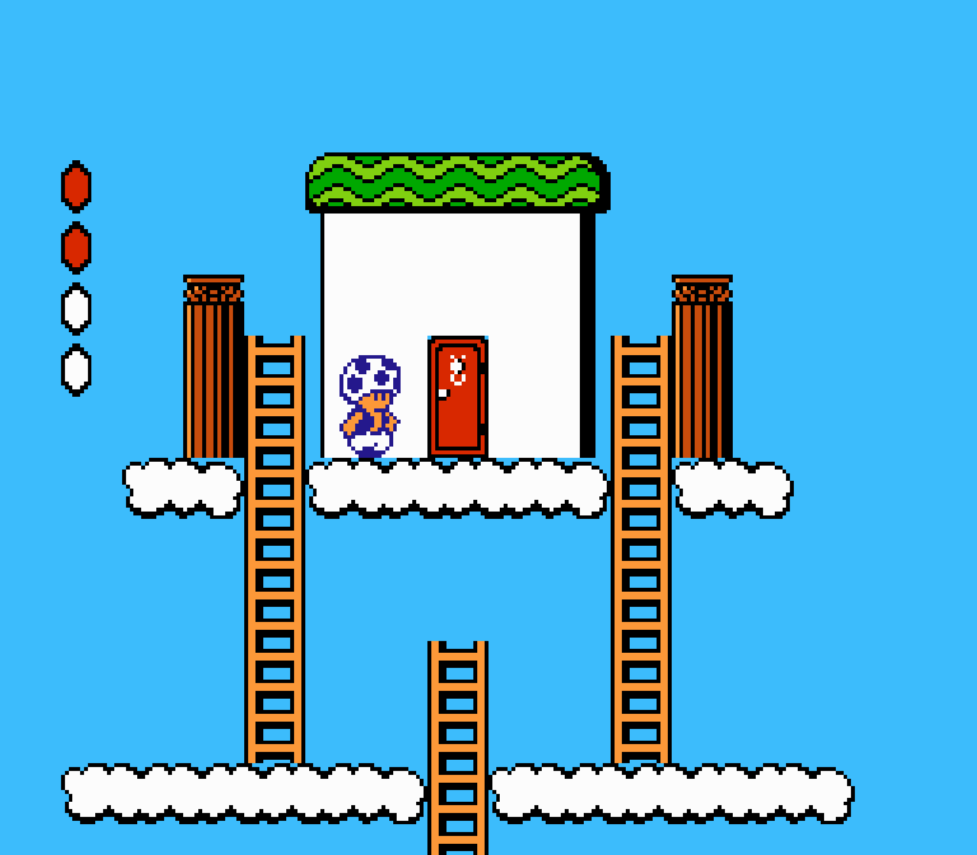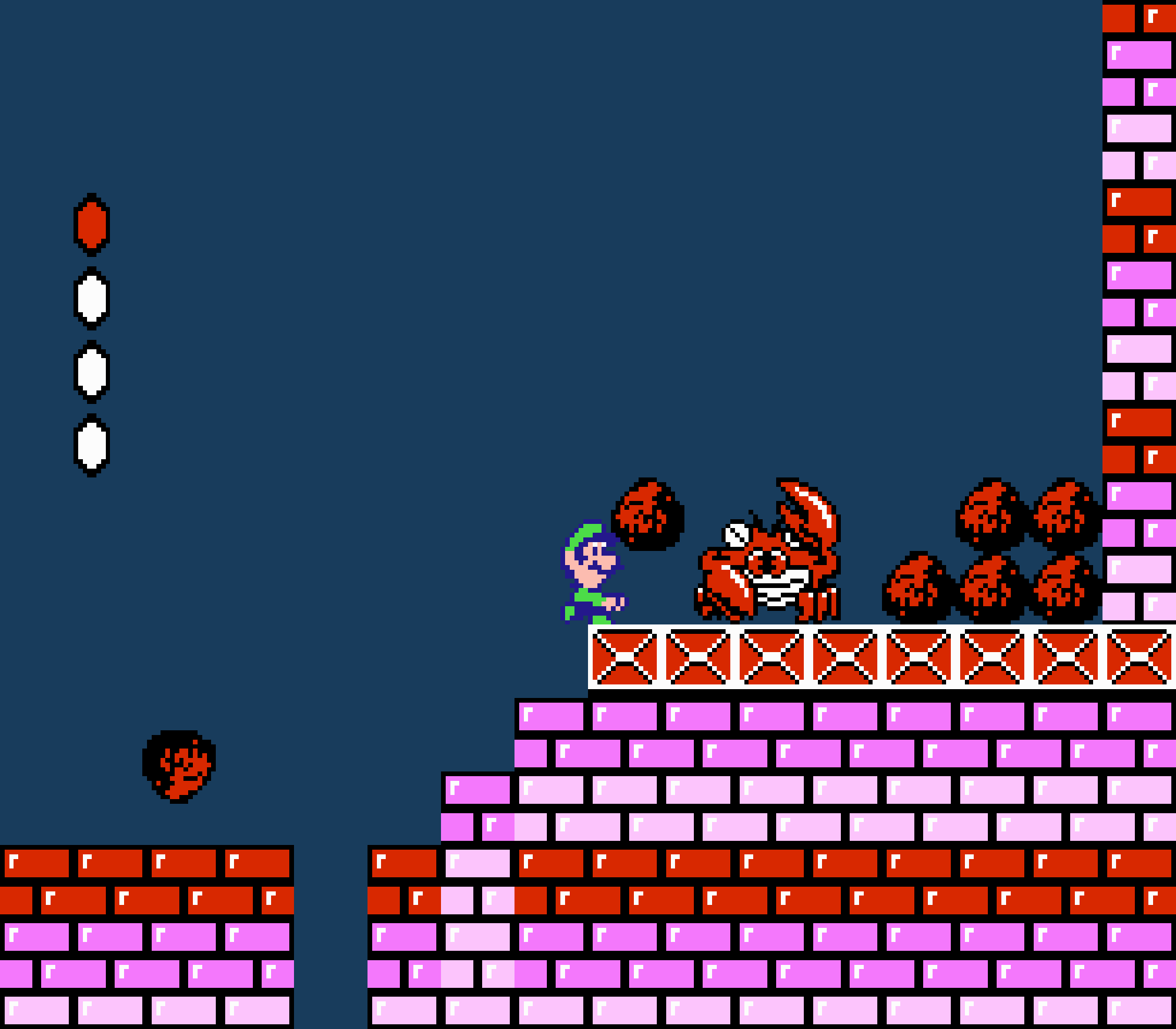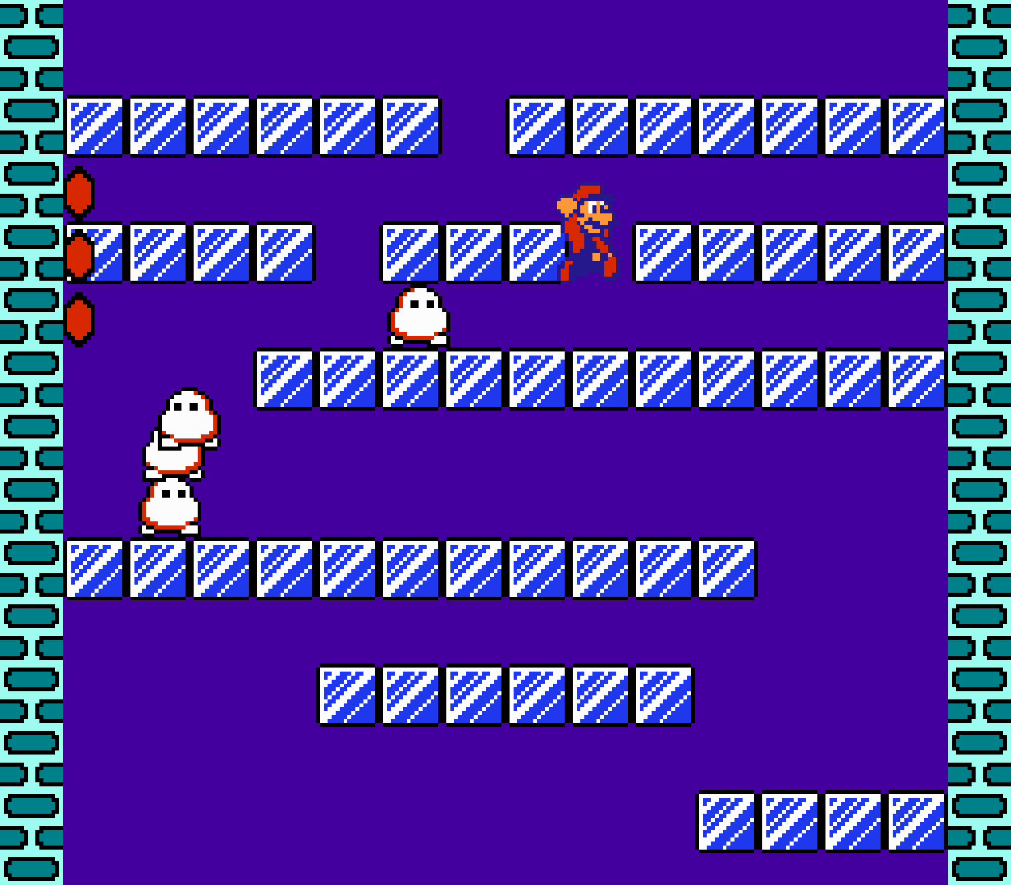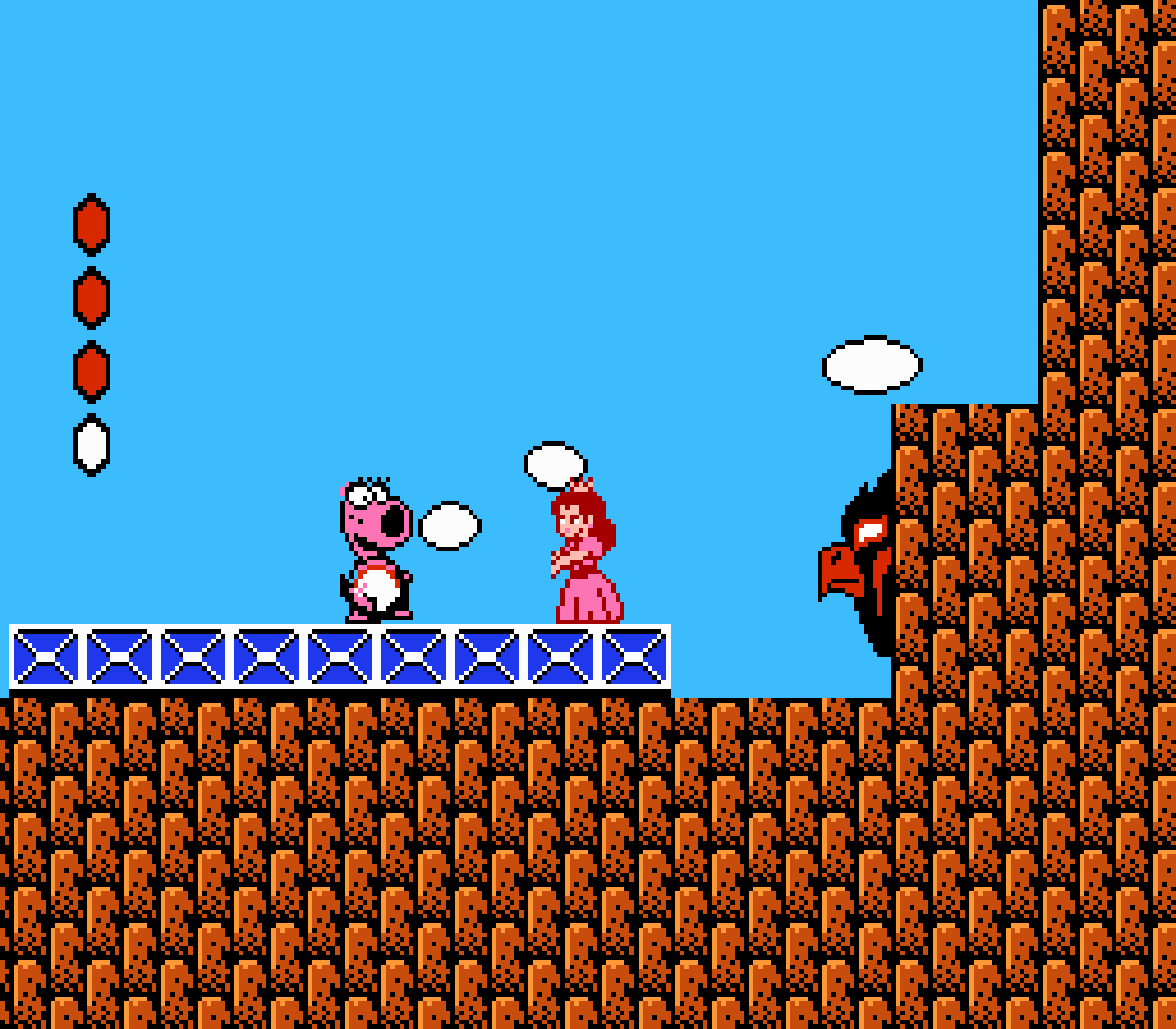 Tout d'abord il faudra à chaque tableau choisir son personnage parmi les 4 et les ennemis ne sont plus des Koopa troopas mais divers animaux, certes mignons mais qui n'ont plus rien à voir avec les fantômes, champignons et tortues d'autrefois. Le boss final est d'ailleurs un crapaud géant nommé Warp. Les autres boss passent d'une souris géante à un serpent à 3 têtes, mais le plus récurent n'est autre que Birdo, cette étrange bestiole qui nous balance des oeufs avec sa propre bouche (?). Heureusement qu'il y a Mario parce qu'on se demande bien où est passé son univers... Pour en revenir à nos 4 personnages jouables, on aura donc le choix entre Mario, Luigi, Toad et la Princesse Peach. Loin d'un simple changement de sprite, chaque perso à ses petites facultés bien à lui. La préférée de tous, la Princesse, pourra voler un court instant, Toad est le seul à courir à la même vitesse lorsqu'il porte quelque chose, Luigi saute plus haut que tous les autres mais est complètement injouable à cause de son inertie, et enfin Mario reste le personnage le plus équilibré de la bande.