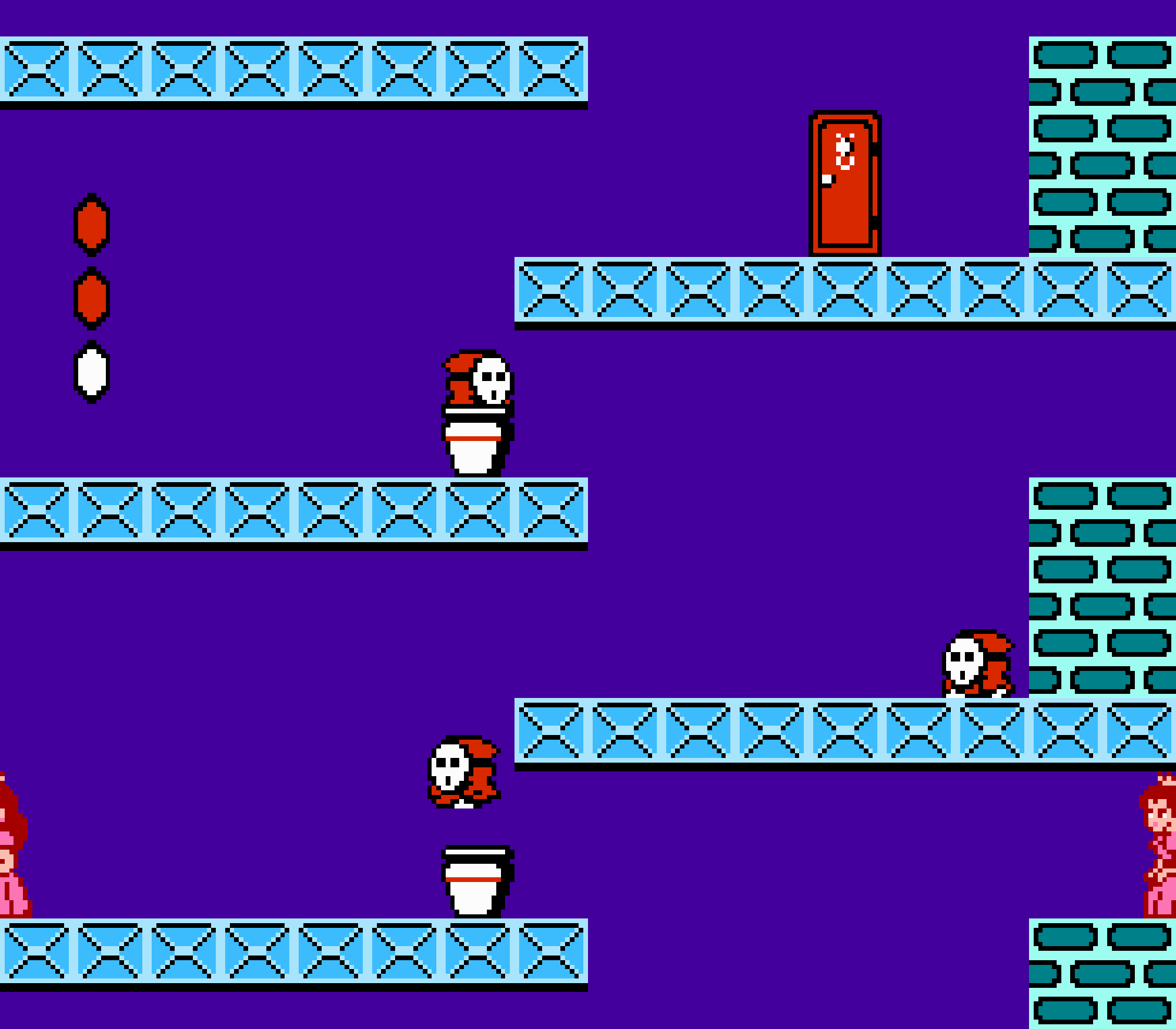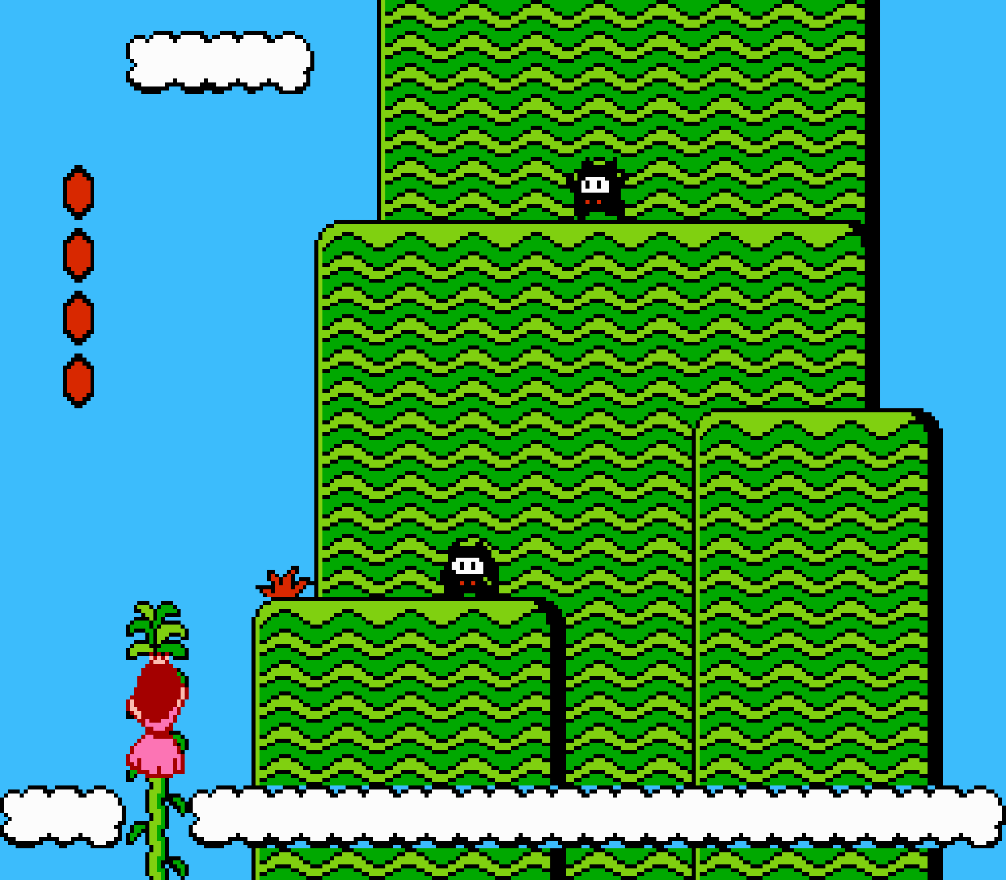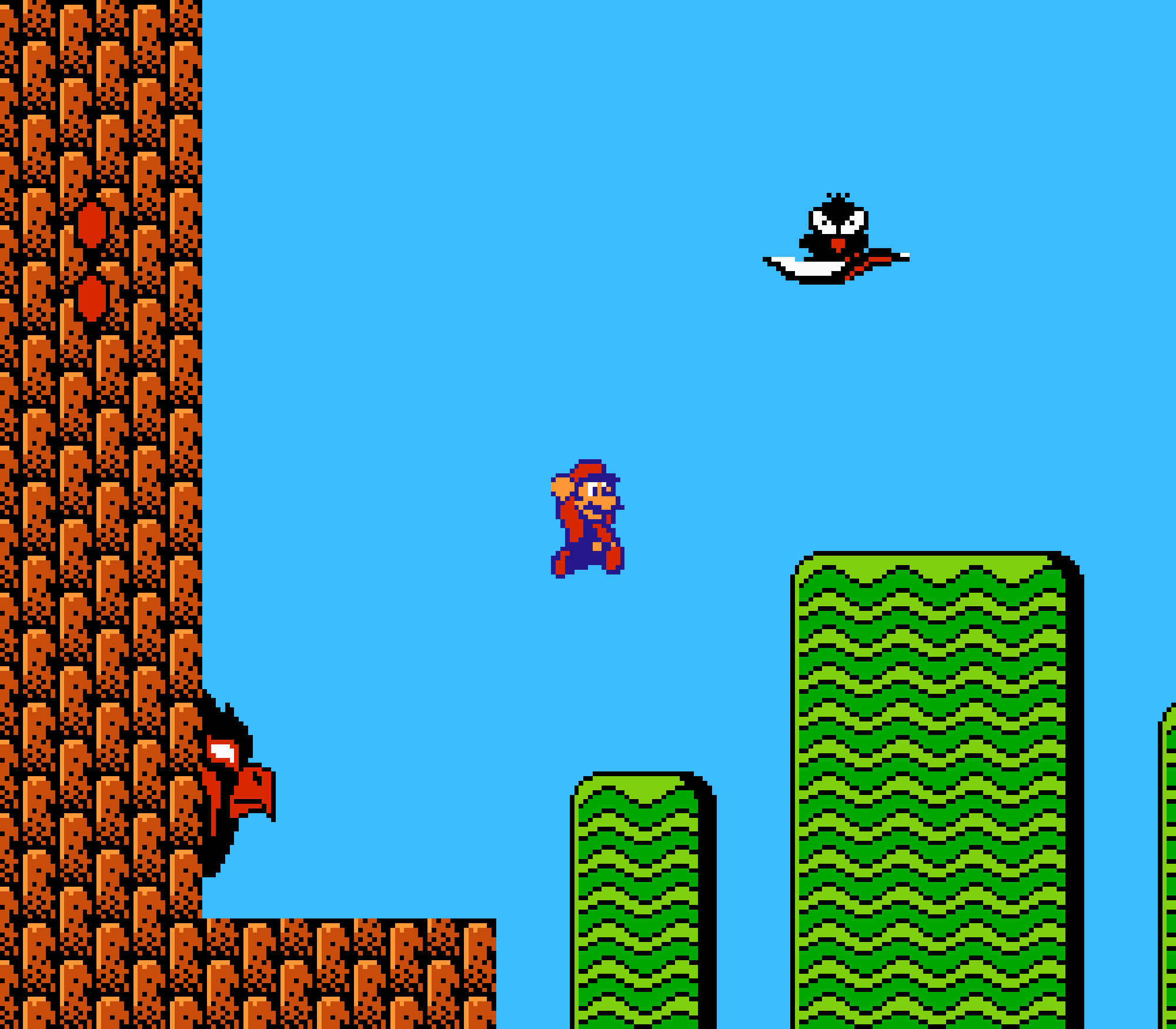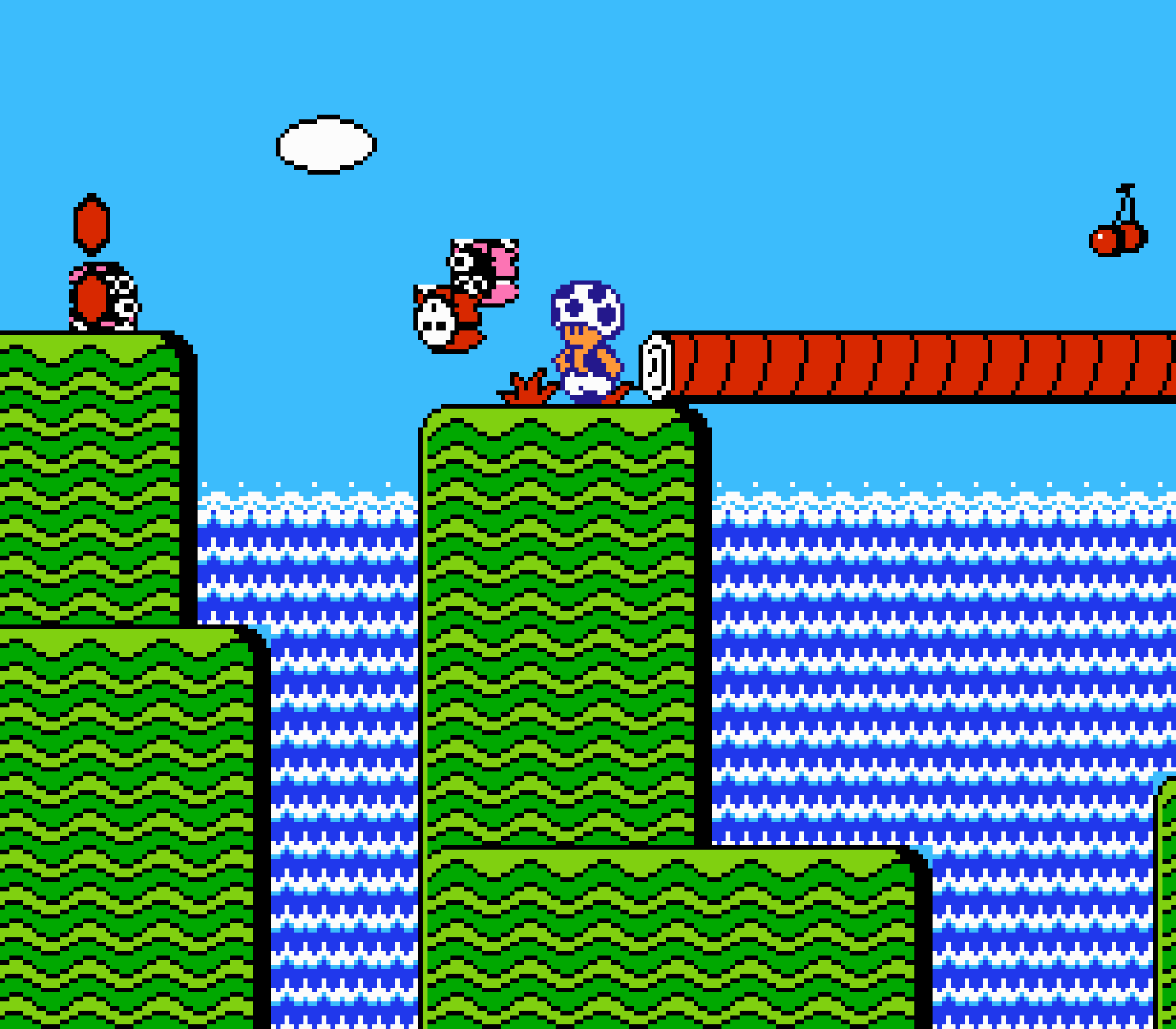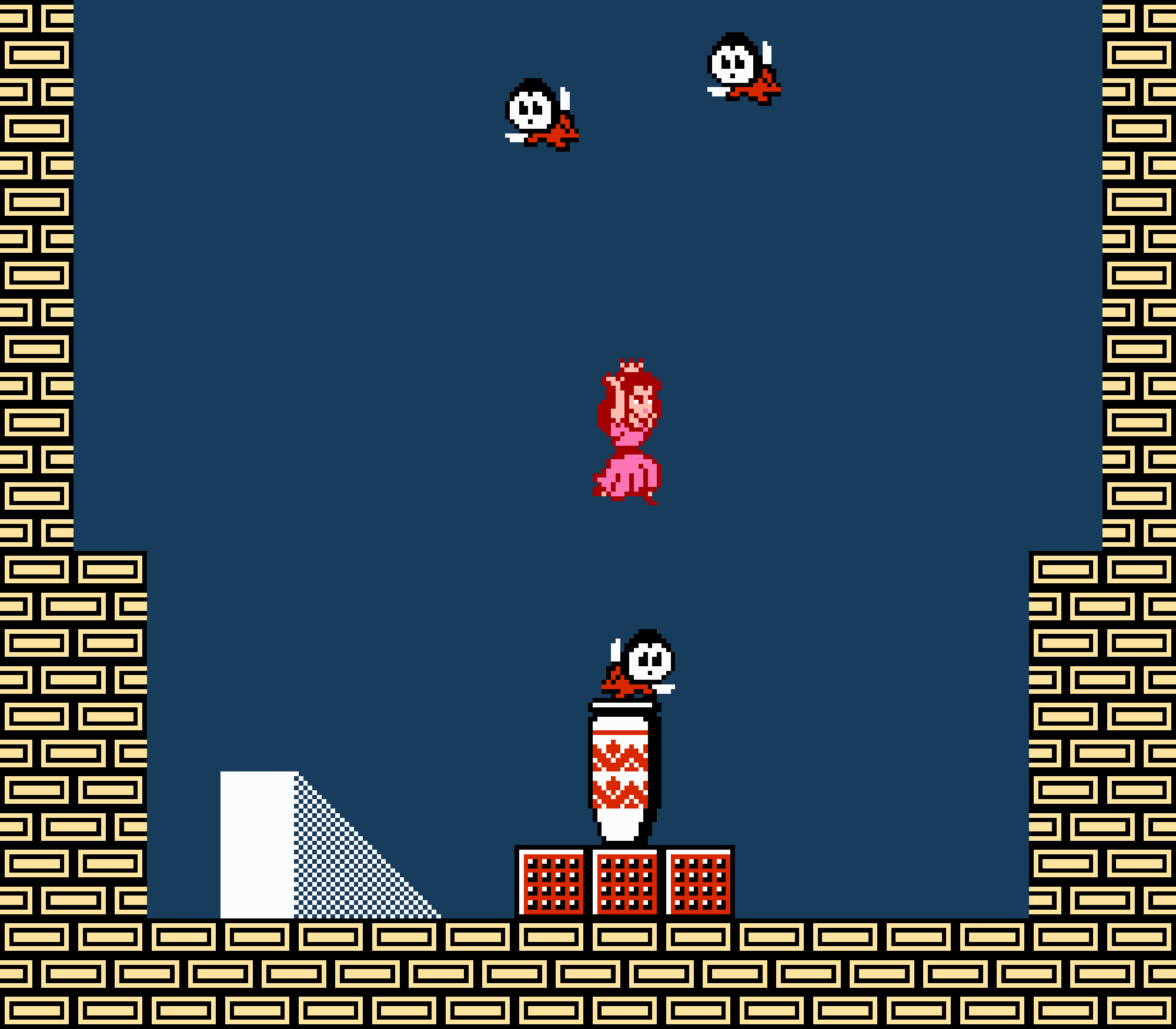Enfin il y a les warp-zones, fidèles à l'opus précédent et des pseudo-tuyaux (des jarres en fait) où votre perso découvrira en général une nouvelle aire. Voilà pour le gameplay (complètement original) de ce Super Mario Bros 2, mais quand est-il de la partie technique ? Et bien si les jeux réellement "propres" sont rares sur NES, j'avoue que celui-ci est particulièrement réussi. Les sprites sont mignons tout plein, c'est très coloré et hormis en de rares cas, l'animation est toujours fluide. Evidemment le design général, issu de la culture hindou, peut paraitre légèrement dissonant pour un Super Mario, mais on s'y fait très vite. Enfin la bande-son est sympa, avec des thèmes particulièrement raccords avec les graphismes, des musiques alternant de belles mélodies à des ambiances plus sombres. Une belle réussite, signée du maitre en la matière, j'ai nommé Koji Kondo. What else...