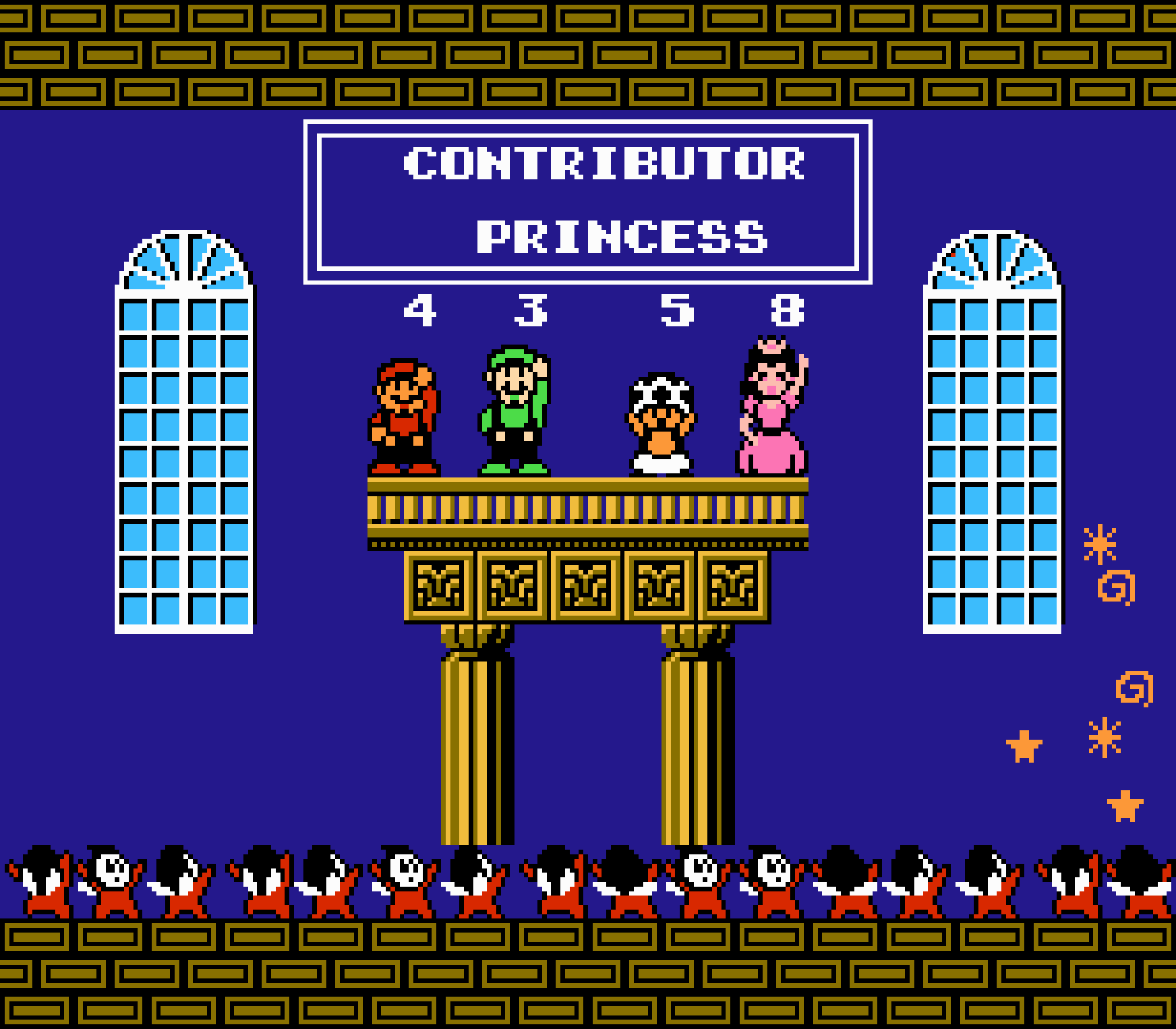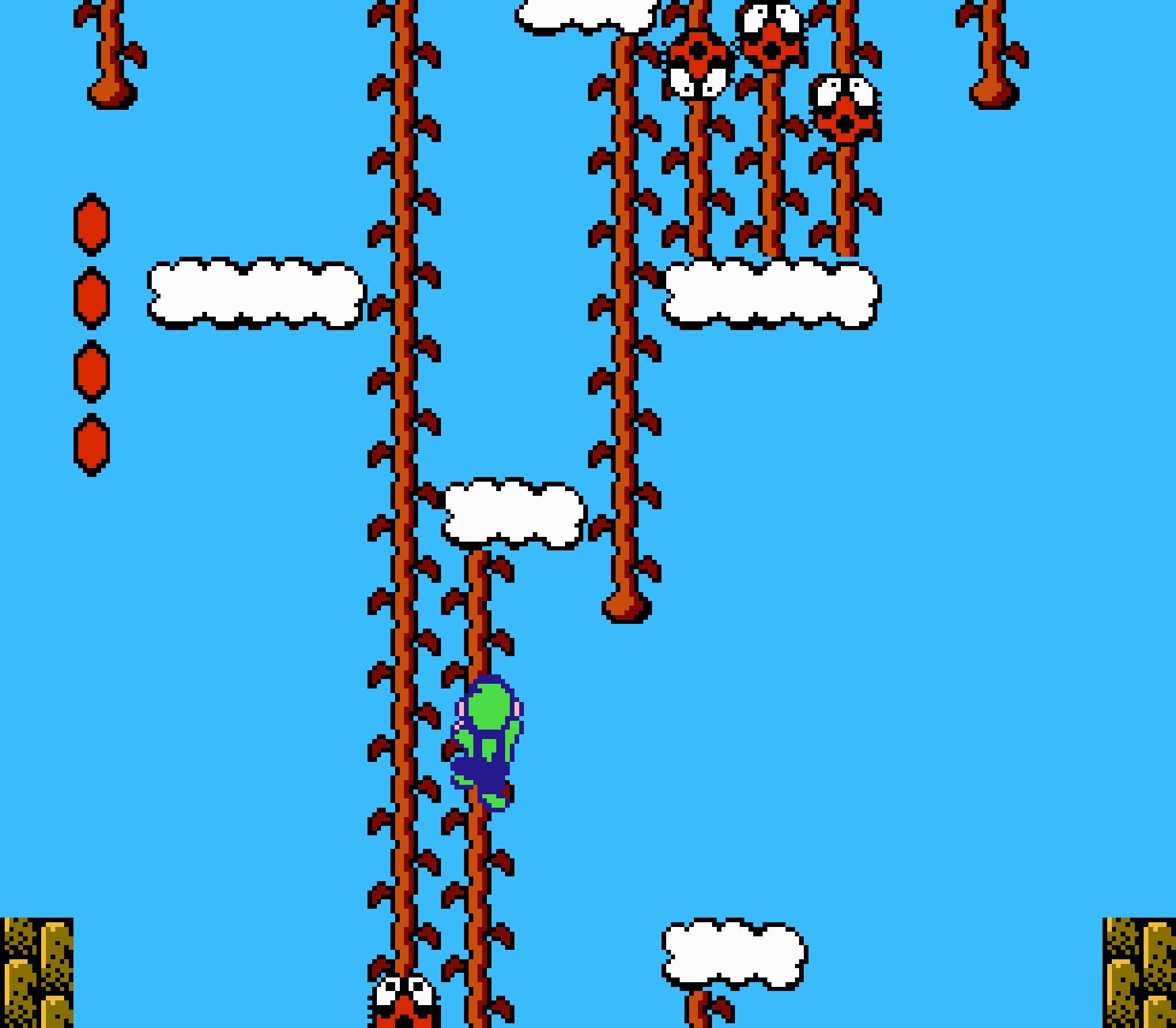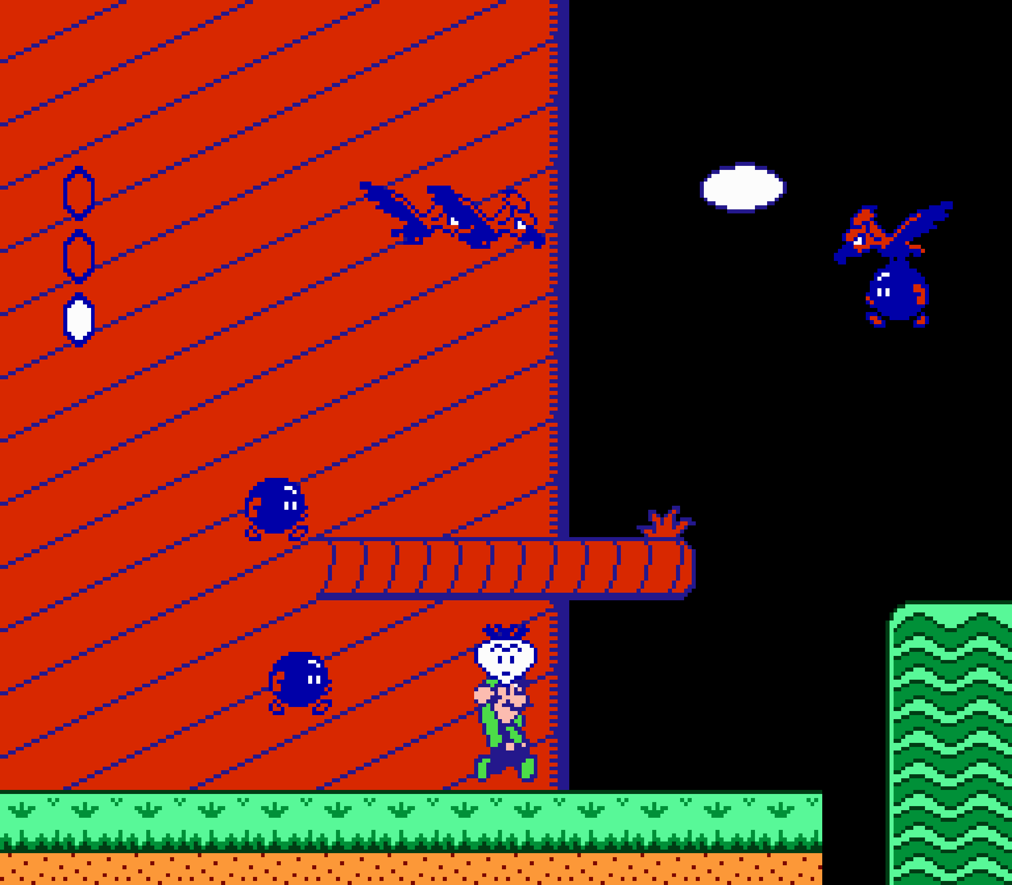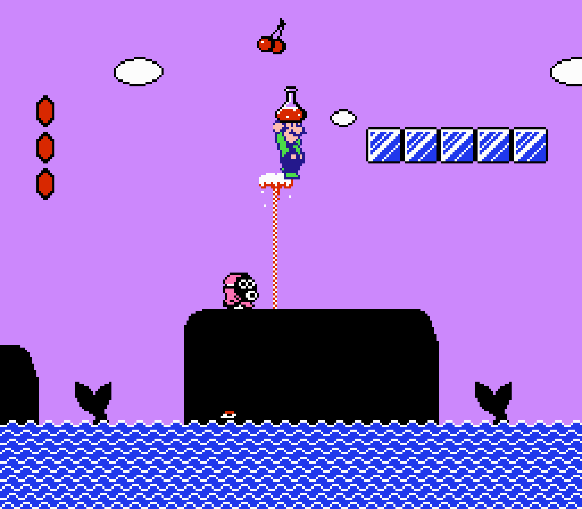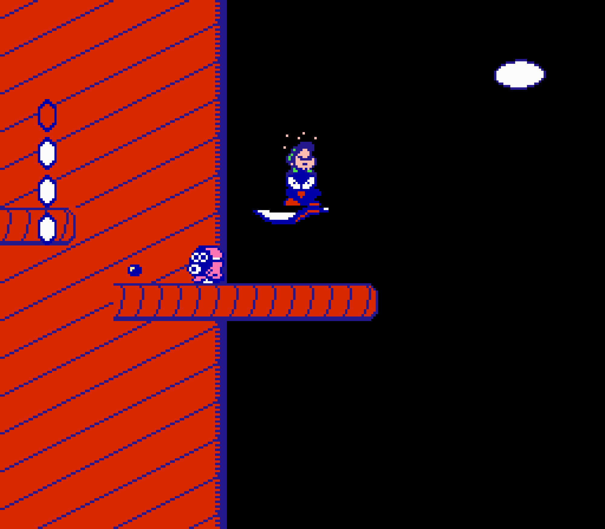 Enfin il y a les warp-zones, fidèles à l'opus précédent et des pseudo-tuyaux (des jarres en fait) où votre perso découvrira en général une nouvelle aire. Voilà pour le gameplay (complètement original) de ce Super Mario Bros 2, mais quand est-il de la partie technique ? Et bien si les jeux réellement "propres" sont rares sur NES, j'avoue que celui-ci est particulièrement réussi. Les sprites sont mignons tout plein, c'est très coloré et hormis en de rares cas, l'animation est toujours fluide. Evidemment le design général, issu de la culture hindou, peut paraitre légèrement dissonant pour un Super Mario, mais on s'y fait très vite. Enfin la bande-son est sympa, avec des thèmes particulièrement raccords avec les graphismes, des musiques alternant de belles mélodies à des ambiances plus sombres. Une belle réussite, signée du maitre en la matière, j'ai nommé Koji Kondo. What else...