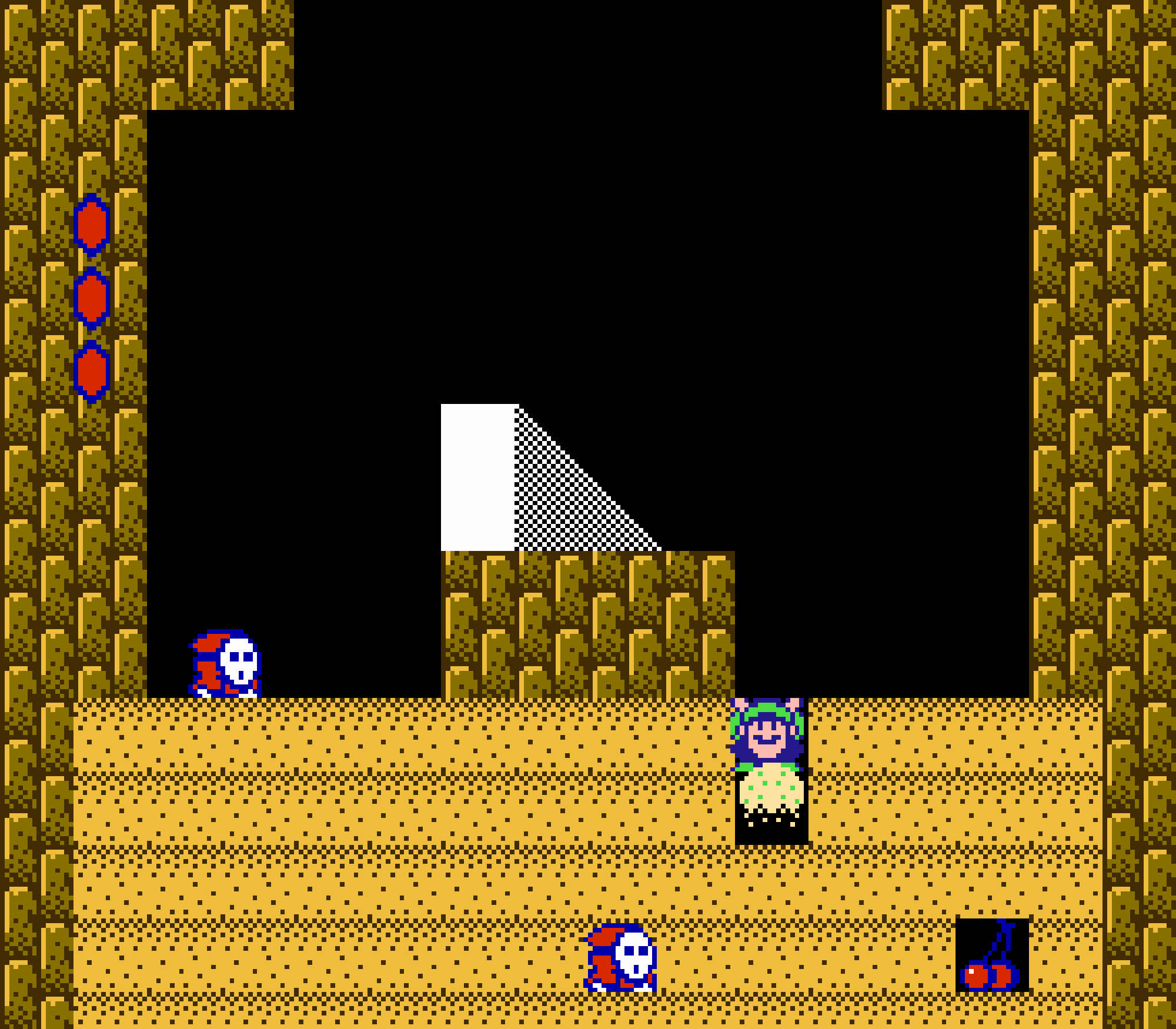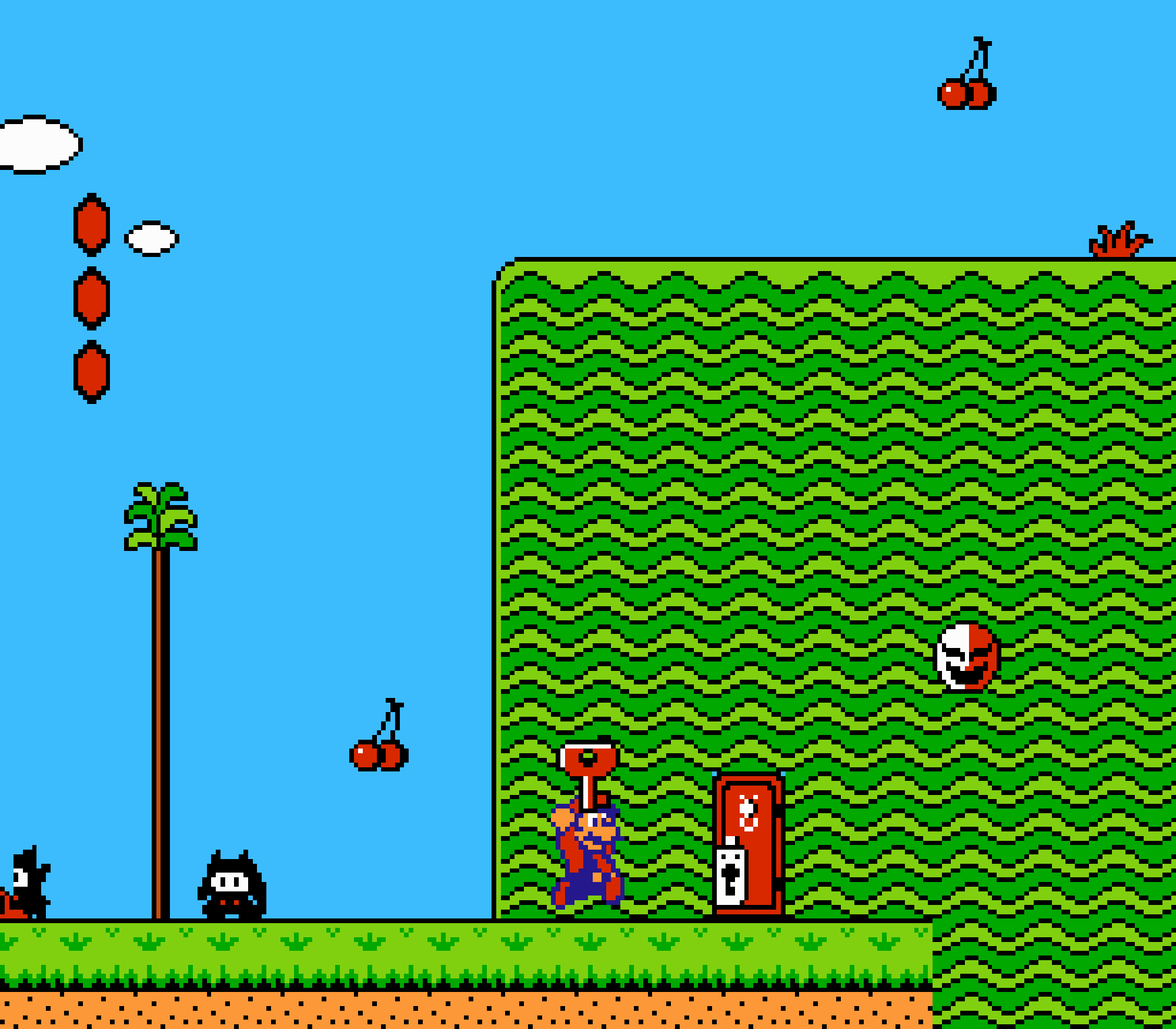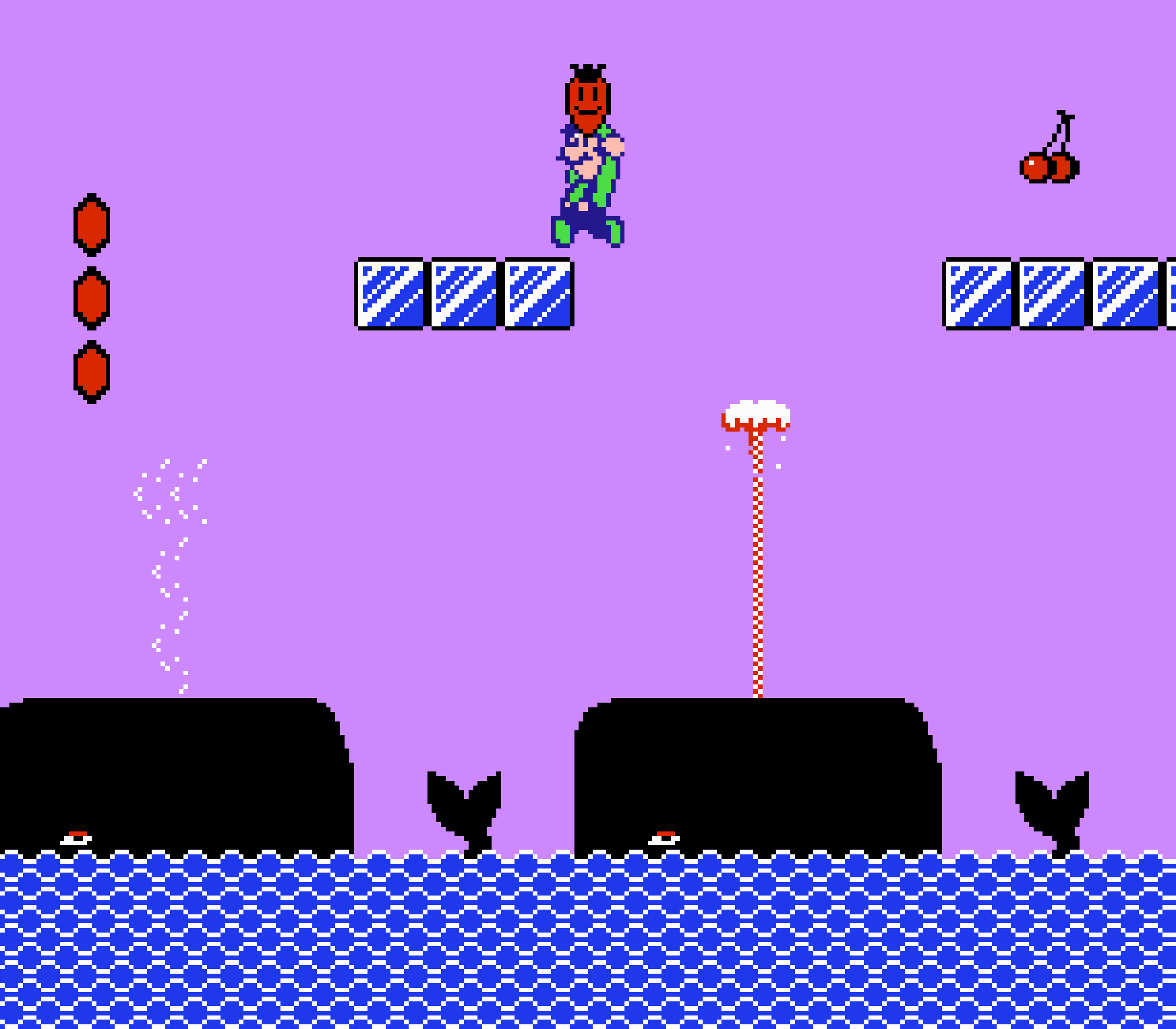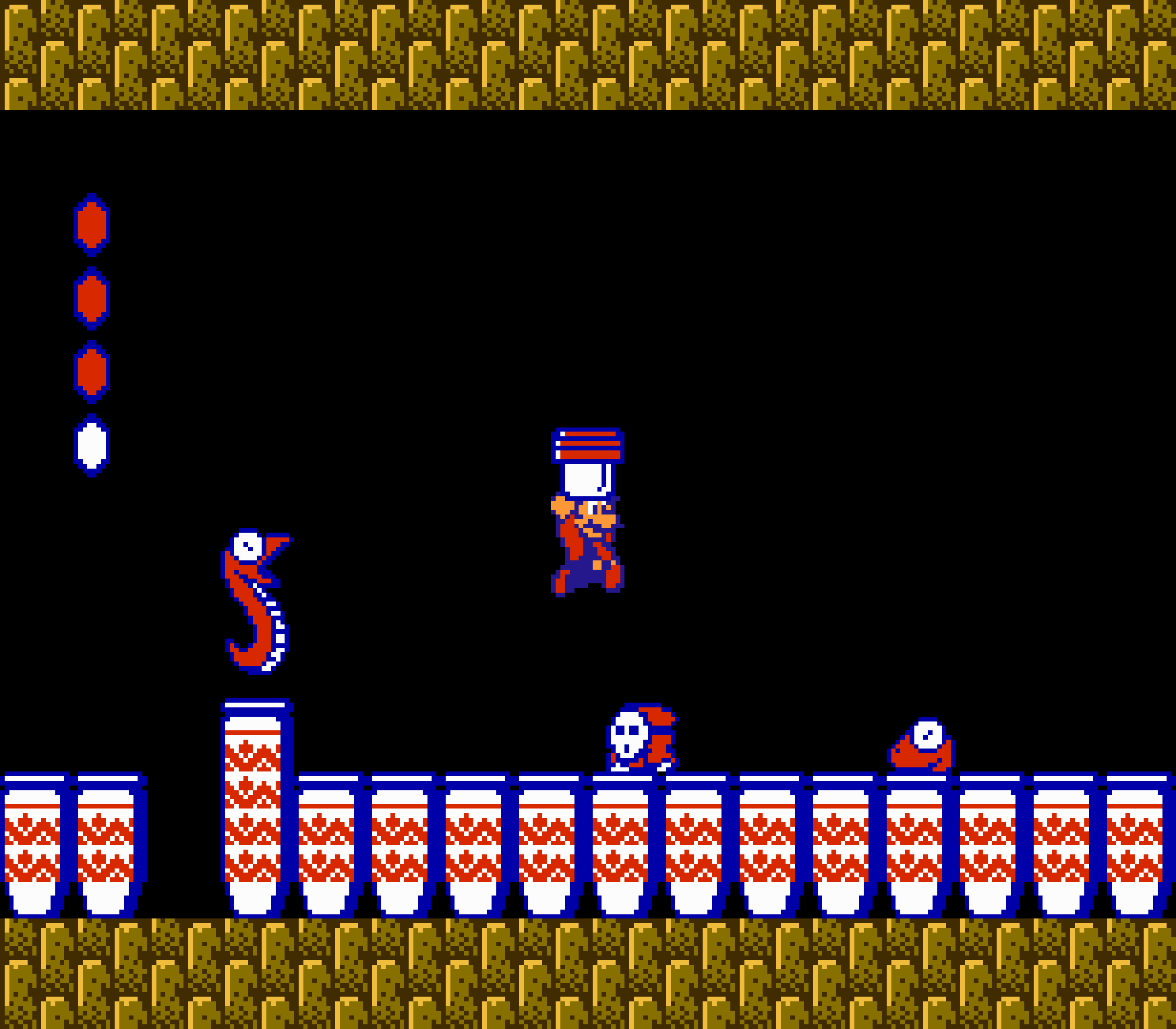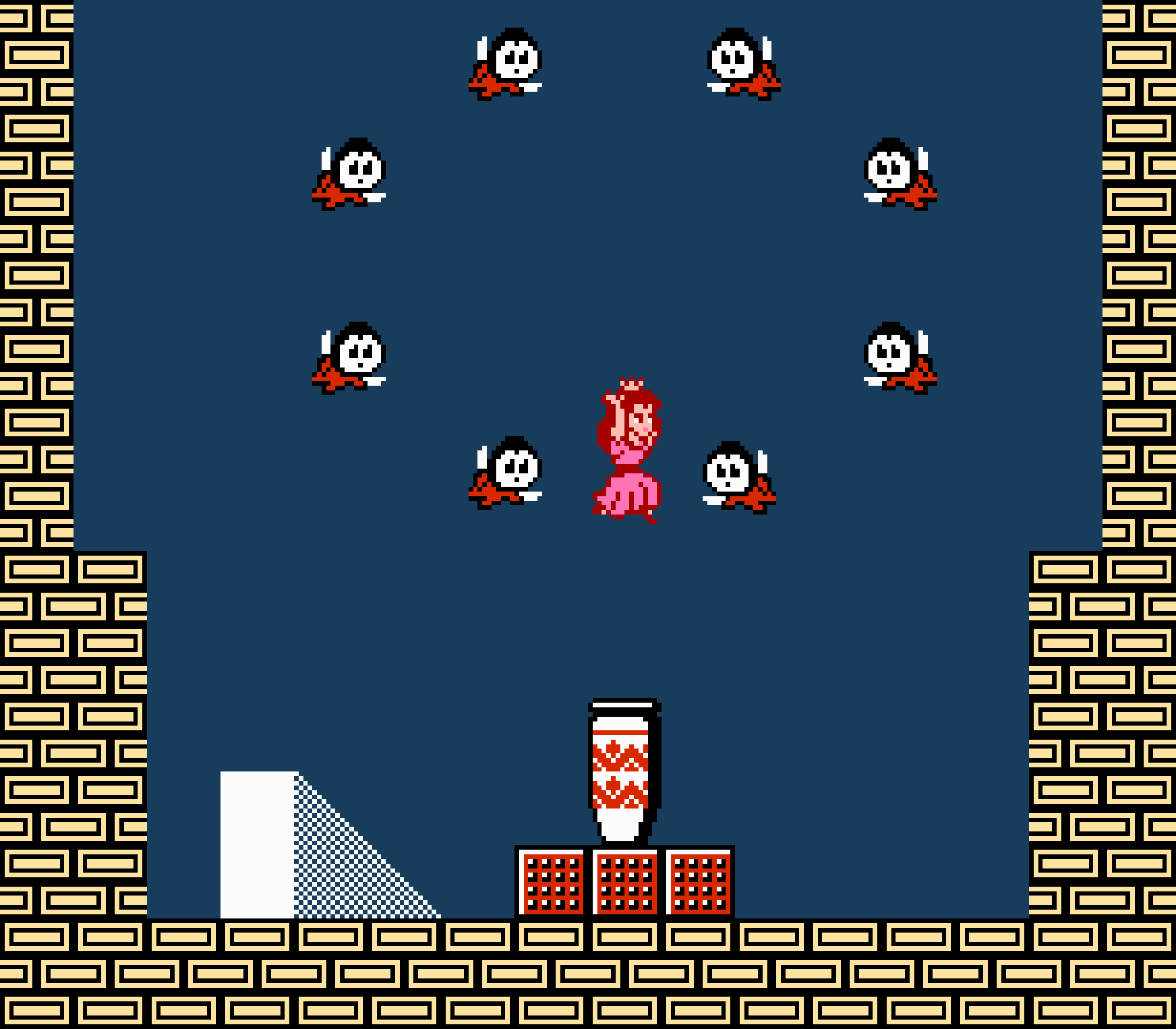 Enfin il y a les warp-zones, fidèles à l'opus précédent et des pseudo-tuyaux (des jarres en fait) où votre perso découvrira en général une nouvelle aire. Voilà pour le gameplay (complètement original) de ce Super Mario Bros 2, mais quand est-il de la partie technique ? Et bien si les jeux réellement "propres" sont rares sur NES, j'avoue que celui-ci est particulièrement réussi. Les sprites sont mignons tout plein, c'est très coloré et hormis en de rares cas, l'animation est toujours fluide. Evidemment le design général, issu de la culture hindou, peut paraitre légèrement dissonant pour un Super Mario, mais on s'y fait très vite. Enfin la bande-son est sympa, avec des thèmes particulièrement raccords avec les graphismes, des musiques alternant de belles mélodies à des ambiances plus sombres. Une belle réussite, signée du maitre en la matière, j'ai nommé Koji Kondo. What else...