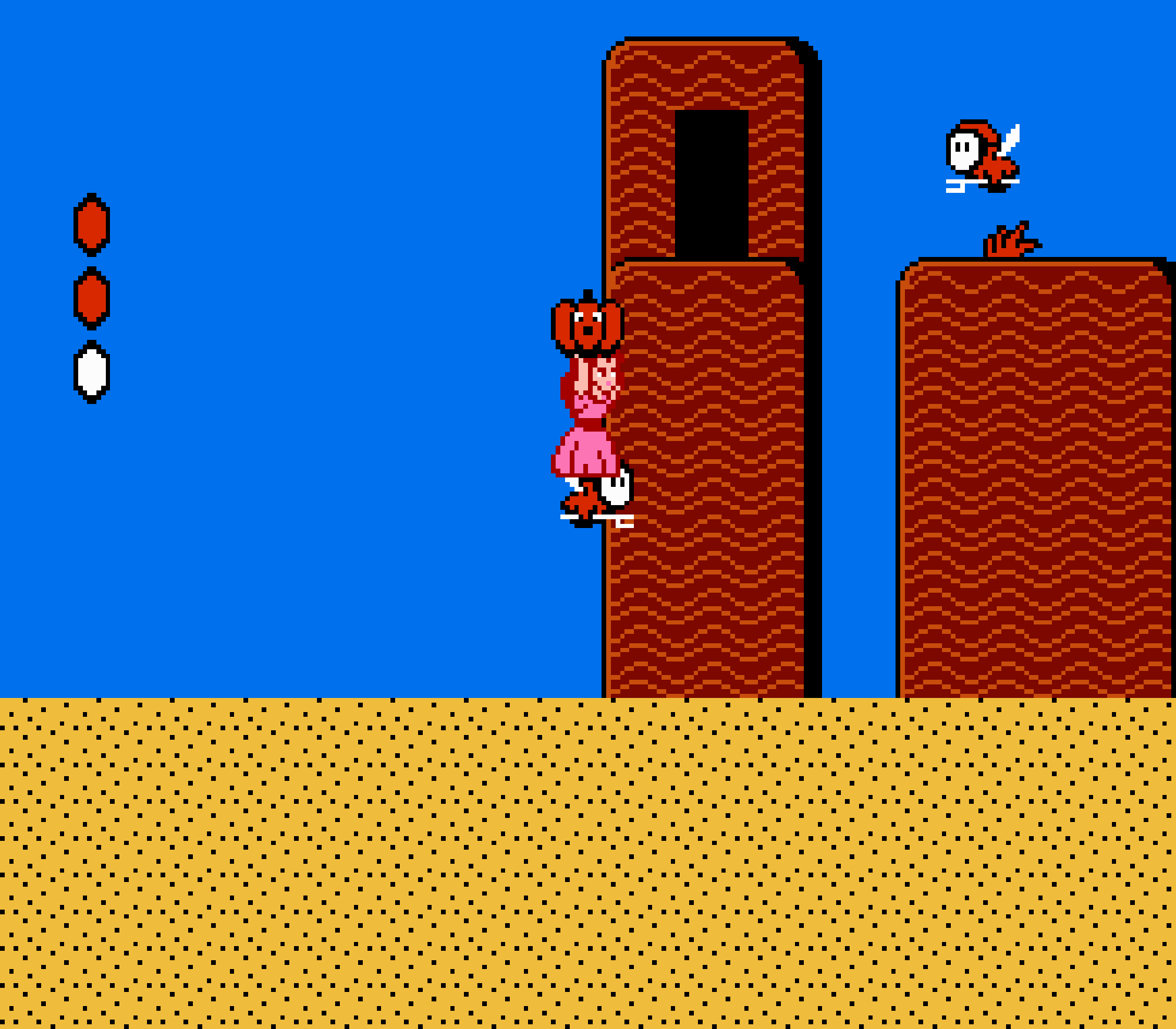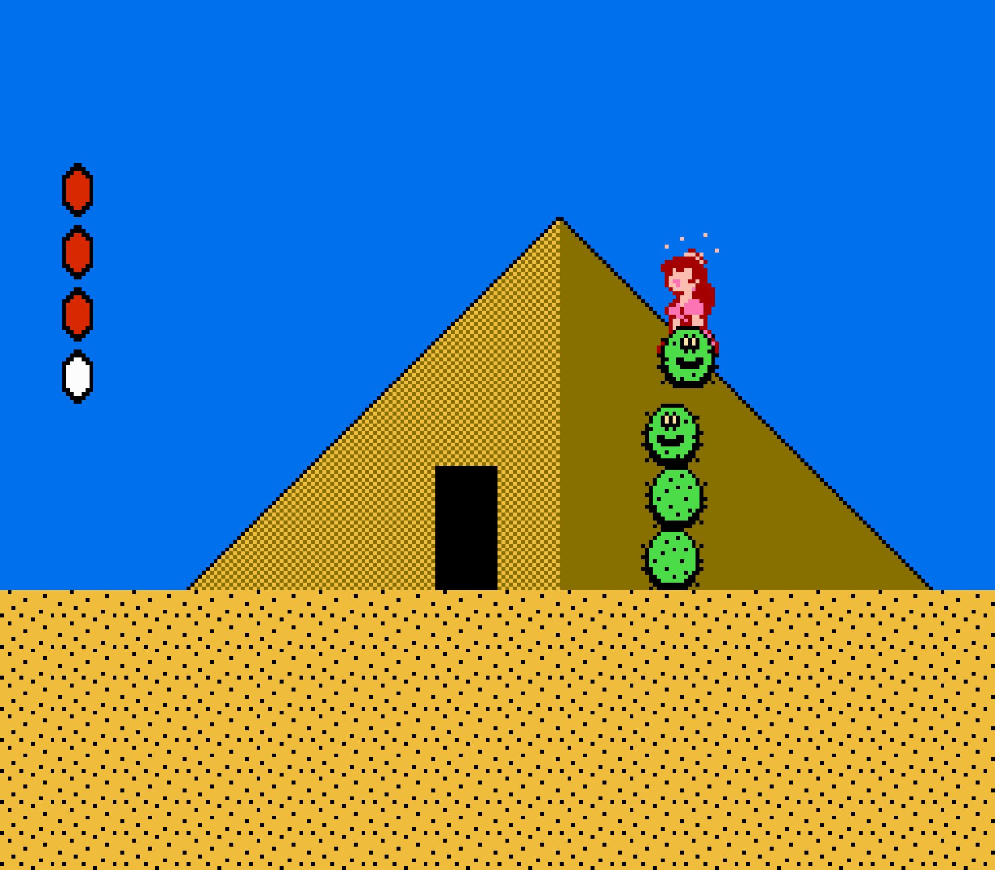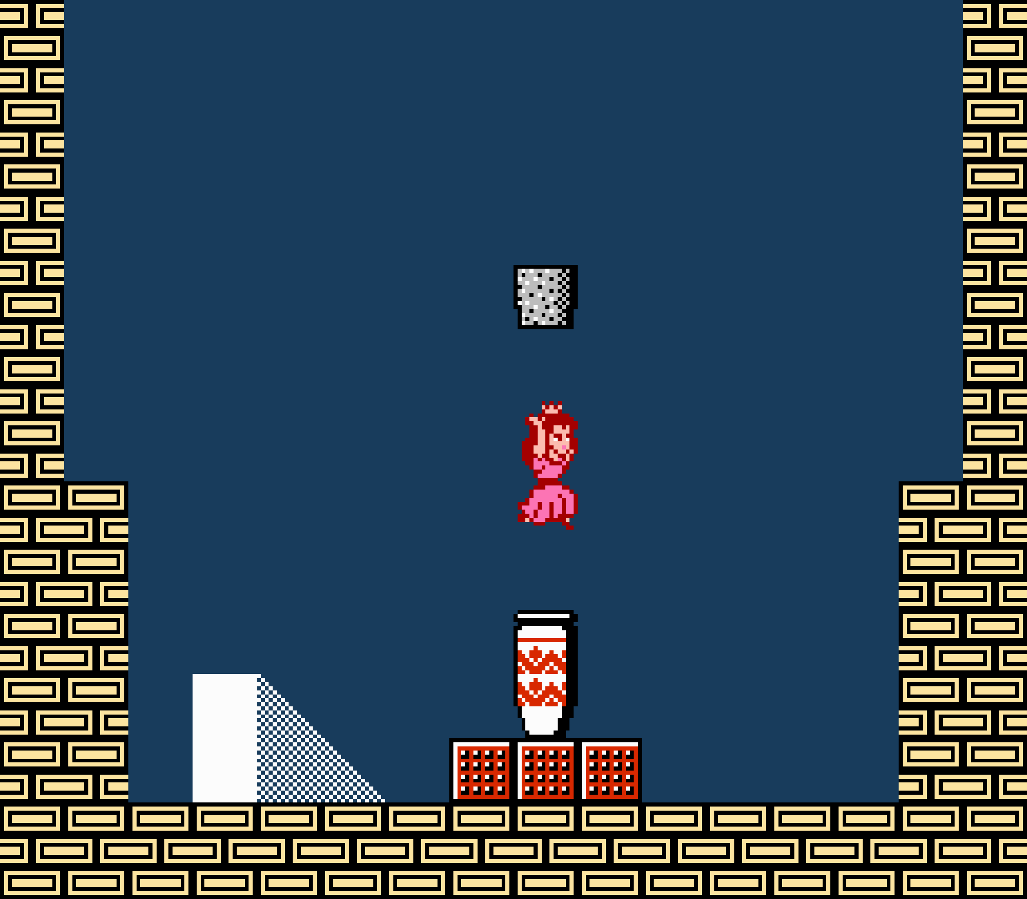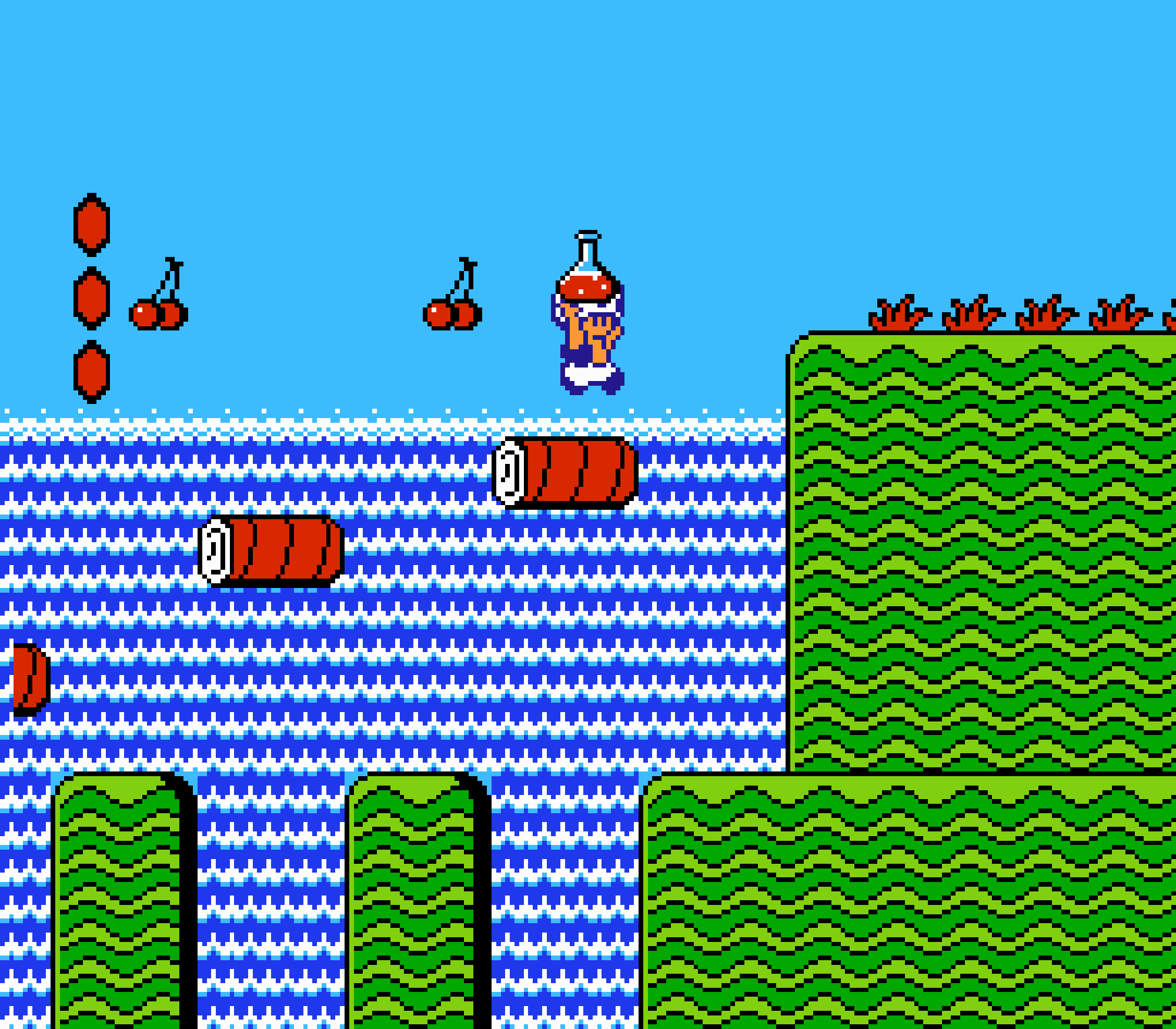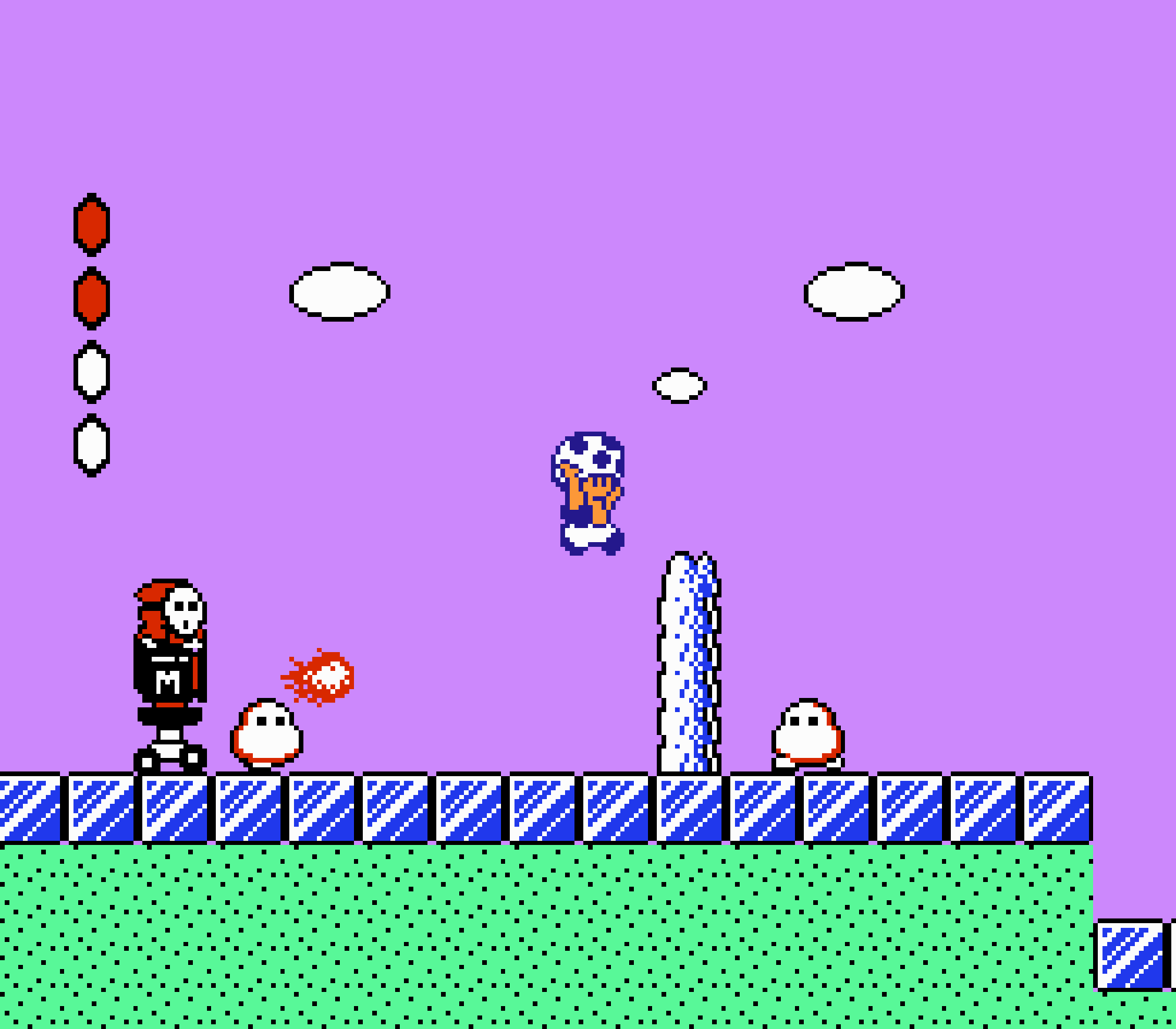 Enfin il y a les warp-zones, fidèles à l'opus précédent et des pseudo-tuyaux (des jarres en fait) où votre perso découvrira en général une nouvelle aire. Voilà pour le gameplay (complètement original) de ce Super Mario Bros 2, mais quand est-il de la partie technique ? Et bien si les jeux réellement "propres" sont rares sur NES, j'avoue que celui-ci est particulièrement réussi. Les sprites sont mignons tout plein, c'est très coloré et hormis en de rares cas, l'animation est toujours fluide. Evidemment le design général, issu de la culture hindou, peut paraitre légèrement dissonant pour un Super Mario, mais on s'y fait très vite. Enfin la bande-son est sympa, avec des thèmes particulièrement raccords avec les graphismes, des musiques alternant de belles mélodies à des ambiances plus sombres. Une belle réussite, signée du maitre en la matière, j'ai nommé Koji Kondo. What else...