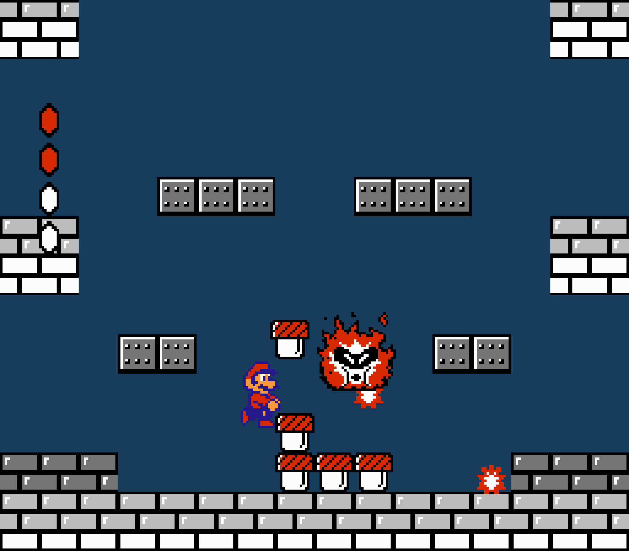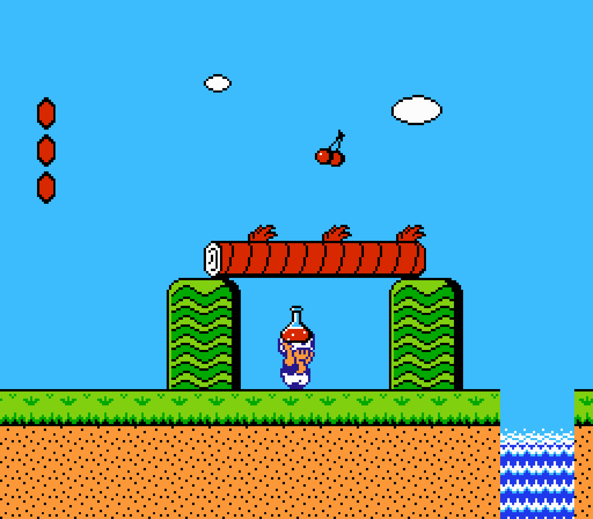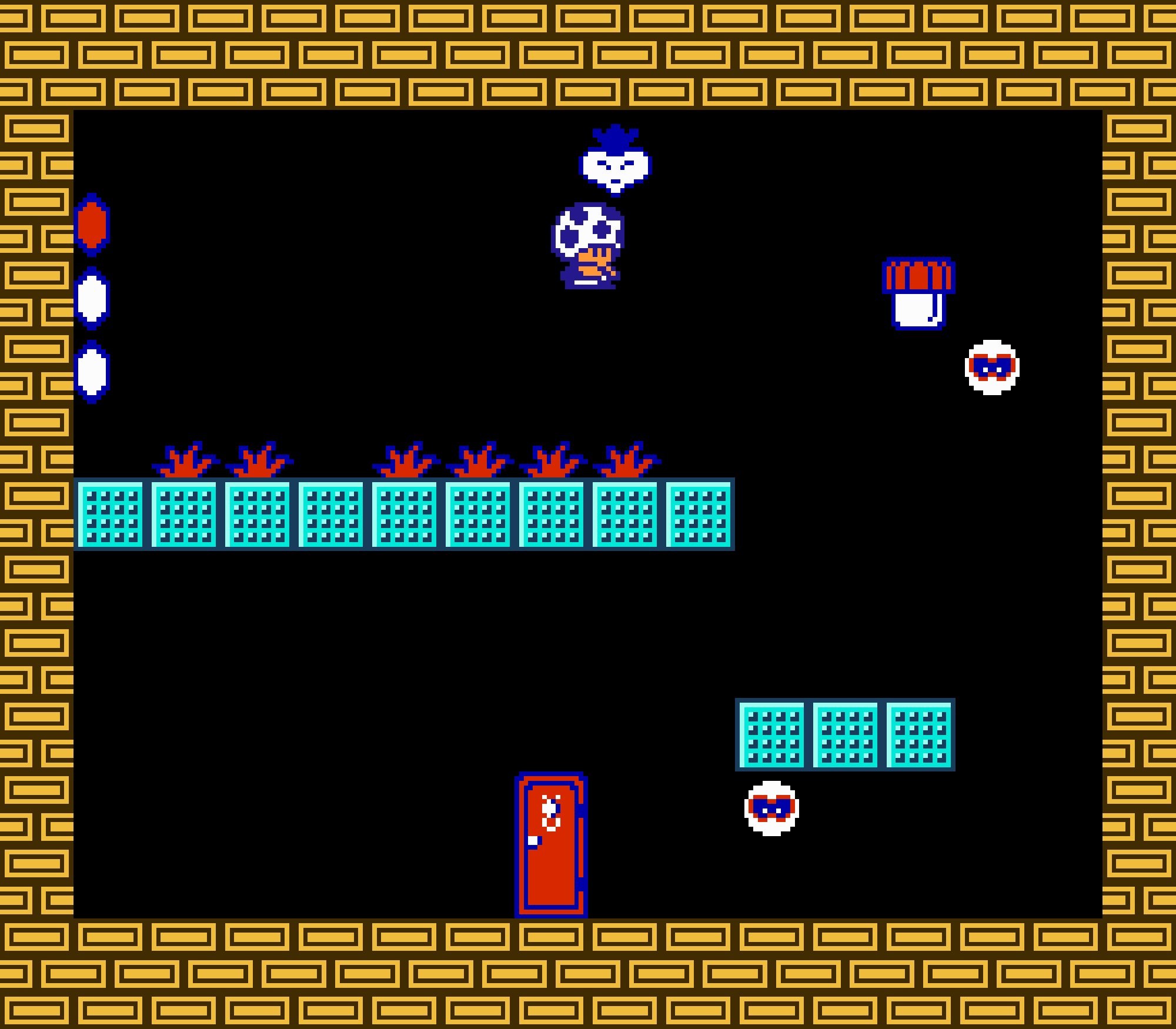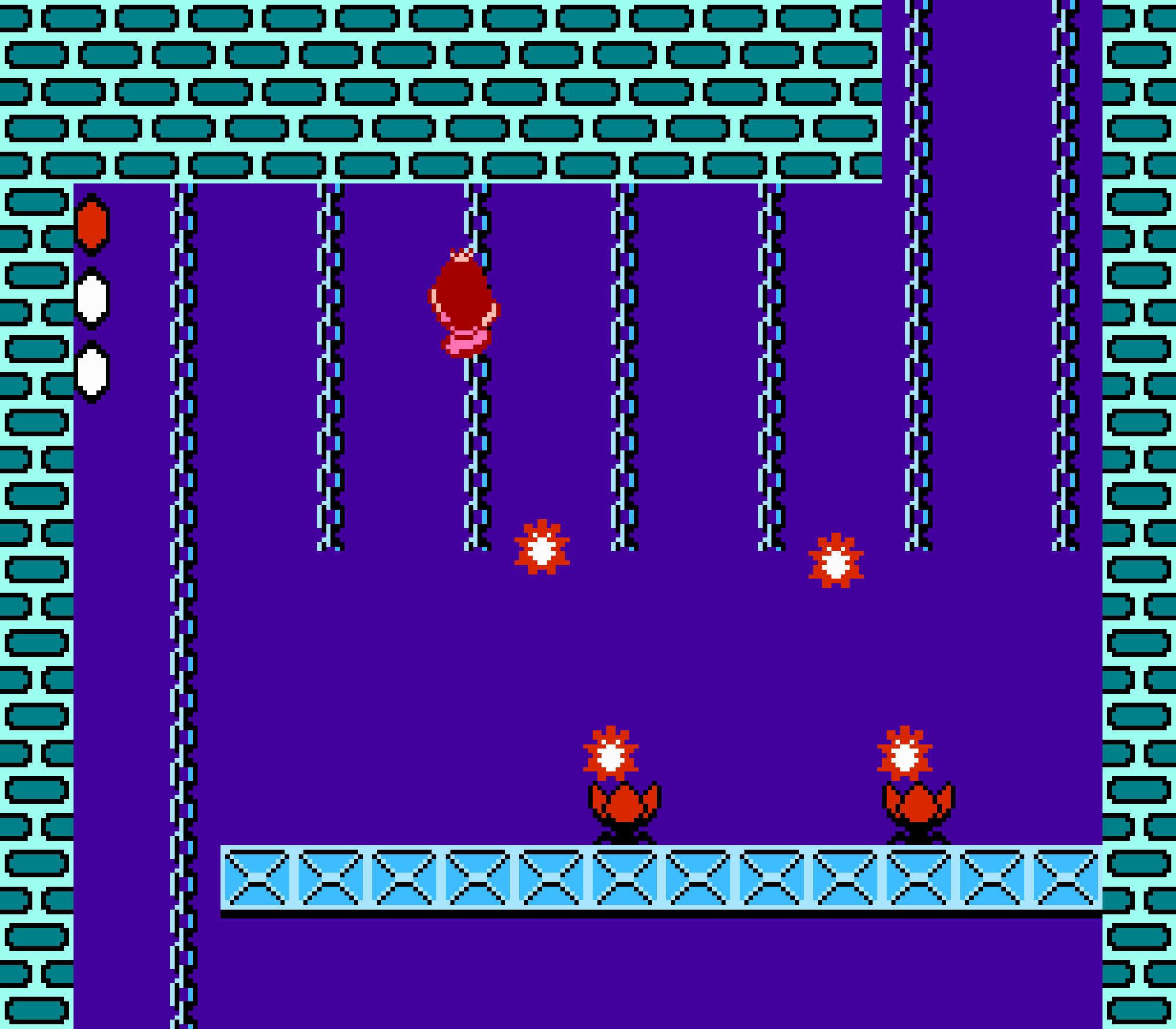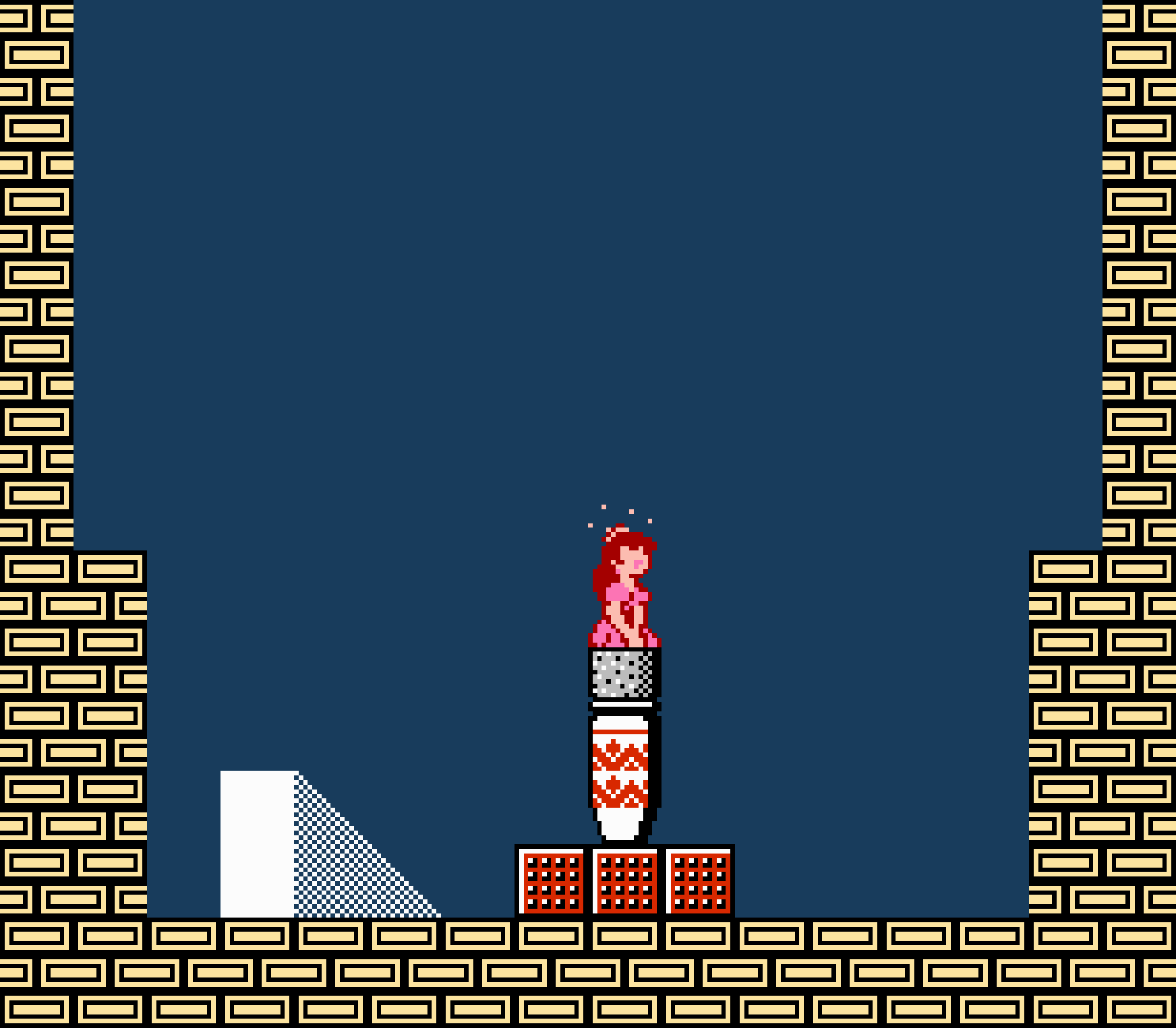 Enfin il y a les warp-zones, fidèles à l'opus précédent et des pseudo-tuyaux (des jarres en fait) où votre perso découvrira en général une nouvelle aire. Voilà pour le gameplay (complètement original) de ce Super Mario Bros 2, mais quand est-il de la partie technique ? Et bien si les jeux réellement "propres" sont rares sur NES, j'avoue que celui-ci est particulièrement réussi. Les sprites sont mignons tout plein, c'est très coloré et hormis en de rares cas, l'animation est toujours fluide. Evidemment le design général, issu de la culture hindou, peut paraitre légèrement dissonant pour un Super Mario, mais on s'y fait très vite. Enfin la bande-son est sympa, avec des thèmes particulièrement raccords avec les graphismes, des musiques alternant de belles mélodies à des ambiances plus sombres. Une belle réussite, signée du maitre en la matière, j'ai nommé Koji Kondo. What else...