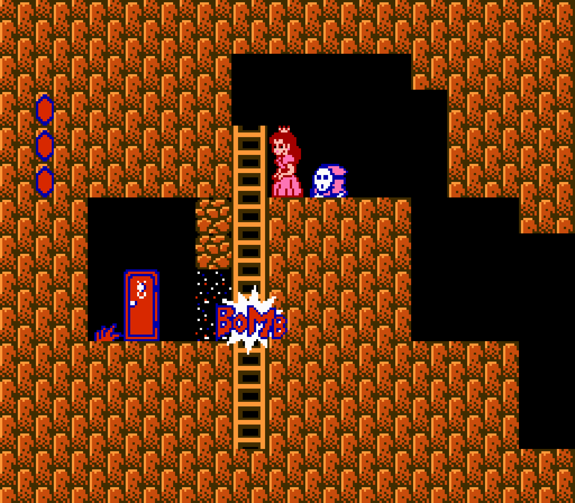 Techniquement Super Mario Bros 2 est plus réussi que le premier épisode concept "aventure" est largement plus poussé dans cet épisode, qui vous obligera à récupérer des clés pour ouvrir des portes, qui vous demandera parfois un peu de jugeote pour débloquer votre passage et surtout beaucoup d'adresse. A mon sens c'est l'un des Mario les plus difficiles de la série mais aussi un opus original comme Nintendo n'en a plus fait. Parfois il faudra jeter des bombes pour casser des pierres (ou tuer des ennemis), monter à des échelles (les niveaux ne sont plus linéaires, ils jouent aussi sur la verticalité donc on ne meurt pas si on tombe) et si on regarde bien, de Mario il reste que les personnages (normal me direz-vous, quand on connait les véritables origines du titre).