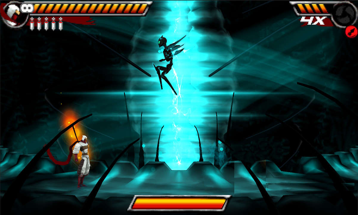 Shinobi 3DS apporte pas mal de petites nouveautés : slide, grappin, chargement d'un coup, assassinat, gestion des kunais... un double-saut (qui désormais marche à merveille) on peut réaliser une violente attaque au sol, notre personnage est capable de faire un slide (en faisant bas + saut), en maintenant la touche d'attaque on "charge" le coup, et comme nous l'avons vu précédemment, la gestion des kunais a été rafraichie. Autre point qui a été modifié, les ninjutsus. Ils sont au nombre de 4, on les sélectionne avec l'écran tactile et on les active avec la touche L. On retrouve le ninjutsu rouge (celui du feu), qui est en quelque sorte le "power-up" du jeu : les kunais sont jetés par 2, ils sont enflammés, idem pour les coups de katana. On retrouve le ninjutsu jaune (celui de la foudre), qui encaisse 3 coups à votre place, le ninjutsu noir active la protection de façon automatique mais baisse votre santé au minimum et vous n'avez plus de kunai, et enfin le ninjutsu bleu rend les kunais ultra rapides, tout en les "rechargeant" plus rapidement.