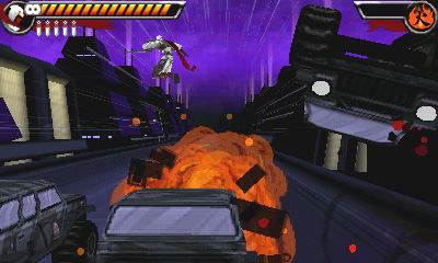 Après moi j'ai été séduit par les graphismes. Bien sûr ils sont incomparables avec un Resident Evil Revelations par exemple (qui sortira à peine 2 mois plus tard), mais entre la cartouche de 4 Go (ah oui quand même !) et le savoir-faire de Capcom, forcément il y a un gouffre. Le jeu ayant été repoussé suite aux mauvaises ventes de la console, peut-on réellement lui en vouloir pour ça ? Et puis personnellement, je trouve que sur le petit écran de la 3DS, ça passe très bien. Le premier niveau notamment, est superbe, avec un bon design et de jolis effets. D'ailleurs, héritier du Shinobi de la PS2, notre ninja arborera la fameuse écharpe que Joe portait pas moins de 9 ans auparavant. Après un premier niveau vraiment réussi, j'avoue que par la suite, c'est un peu moins rutilant car les décors urbains sont tout de suite moins flatteurs... mais de là à dire que le jeu est "moche" je trouve que c'est abusif.