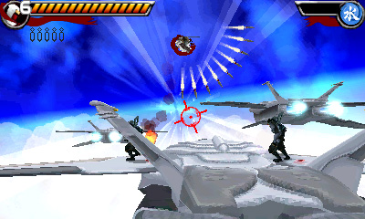 On retrouve donc la fameuse course à cheval (malheureusement sans une musique aussi mémorable qu'Itaden) et son homologue la course en surf (à nouveau sans la mémorable musique de Whirlwind), l'ascenseur, le toit du train qui est mixé avec le labo bizarre où on se fait attaquer par des cerveaux mutants, l'usine d'armement (ici représenté par un porte-avions), l'autoroute où il faut faire gaffe aux bagnoles qui passent et à la fin du niveau 4 on a même un bonus-stage qui reprend exactement celui du jeu d'origine, où on doit zigouiller les ennemis qui s'approchent en vue subjective (sauf qu'on lance des kunais et non des shurikens). Bien entendu, Shinobi 3DS n'est pas qu'un simple mélange de tous les niveaux qu'on connait déjà, il y a aussi pas mal de nouveautés... cette fois un peu moins marquantes.