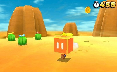 Mario 3D Land n'est pas vraiment une suite ou un quelconque Remake du mythique Super Mario Land (mixé à Super Mario Bros 3 afin de donner cet improbable titre), comme on aurait pu le penser de prime abord (un peu comme New Super Mario Bros n'est pas un Remake de Super Mario Bros). Cependant, ce tout premier opus exclusif à la Nintendo 3DS n'en est pas moins un sacré bon jeu ! En réalité, il est un hommage brillant aux Super Mario Bros 1, 3 et World, saupoudré d'un peu de Super Mario 64 et d'un zeste de Super Mario Galaxy. Un sacré melting-pot ! Si le jeu n'a rien avoir avec un épisode purement 2D (contrairement à ce qui se disait avant qu'il ne sorte), il est au contraire un exemple brillant et intelligemment mis en œuvre de ce que la 3D Stéréoscopique peut apporter en terme de trompe-l'œil ou simplement de positionnement dans la profondeur de champ. Mais au-delà de sa parfaite exploitation de la 3D, ainsi que des performances techniques de la console qui offrent ici un jeu beau, coloré et proposant un superbe design, nous sommes également en présence d'un excellent épisode.