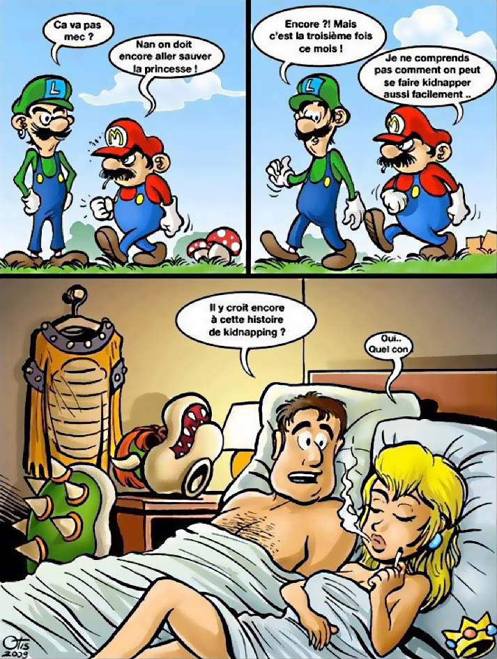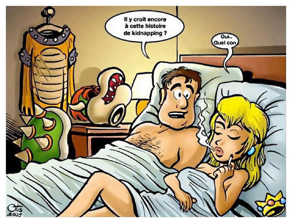 Non moi ce qui me gêne, c'est qu'à l'image des oisillons, maman Nintendo nous revomie directement au fond de la gorge son éternel scénario bidon, celui-là même que Disney n'ose plus proposer ! Et quand bien même cette histoire est essorée jusqu'à l'os, ce qui me gonfle c'est qu'on nous la ressort à chaque épisode, comme si Nintendo nous prenait ouvertement pour des cons, et que nous, avec en plus le sourire, on achetait volontairement leur jeu. Sans dire que je m'attendais à un scénario fulgurant, une mise en scène digne d'un Metal Gear Solid, ils pourraient au moins faire l'effort de "changer de disque" de temps en temps... même si je suis le premier à avouer qu'on ne joue pas à un Super Mario pour son histoire.