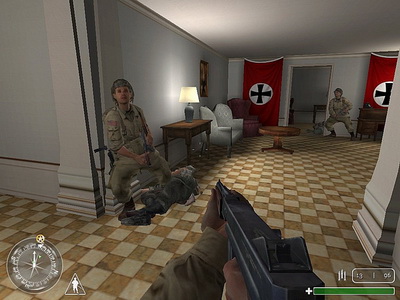 On retrouve très vite la "formule COD" avec un jeu linéaire et très scripté connaissez sans doute l'histoire : après le développement de Medal of Honor, certains développeurs ont quittés le studio 2015 et Electronic Arts, pour former Infinity Ward. Convaincus que Medal of Honor n'allait pas assez loin, tout en n'étant pas assez respectueux des faits réels, ils ont développés Call of Duty, le concurrent direct de celui qui a lancé le phénomène "Seconde Guerre Mondiale". Par la même occasion, Electronic Arts et Activision sont "entrés en conflit", une guéguerre qu'EA a perdu à la sortie de Call of Duty 4, Infinity Ward démontrant tout son talent de développeur, un savoir-faire difficilement égalable et dont Medal of Honor : Airborne ne supporte pas la comparaison. Mais ici il n'est pas question de parler de ces gloires du FPS contemporain, mais plutôt de revenir sur les origines de la série, avec le premier épisode de Call of Duty.