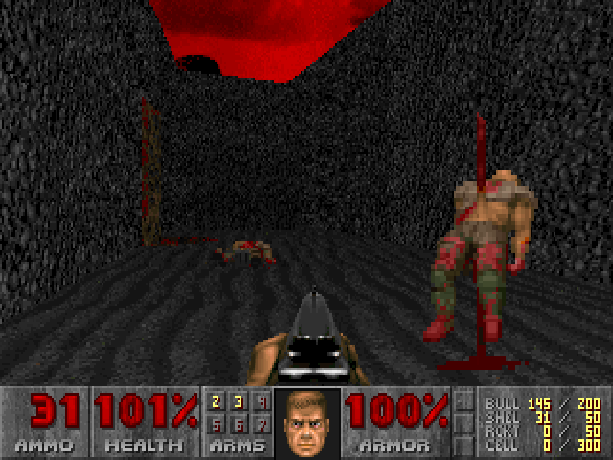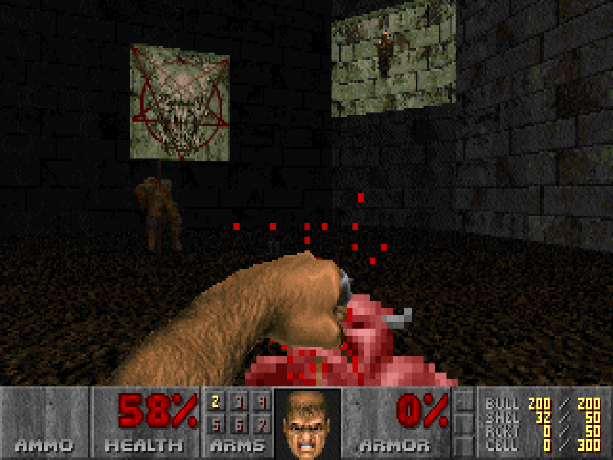Pour clôturer ce joli chapitre d'histoire, il faut savoir que le DOOM original a refusé de prendre en charge ma souris. Il faut dire qu'à l'époque, elles étaient encore très rares et en jouant au clavier, un astucieux système de visée automatique permettait de s'en passer. Trop habitué à jouer avec, je suis donc passé à la version Ultimate qui est sortie 1 an et demi plus tard et qui apporte un 4e chapitre au jeu (Thy Flesh Consumed) ainsi que tout un tas d'options.