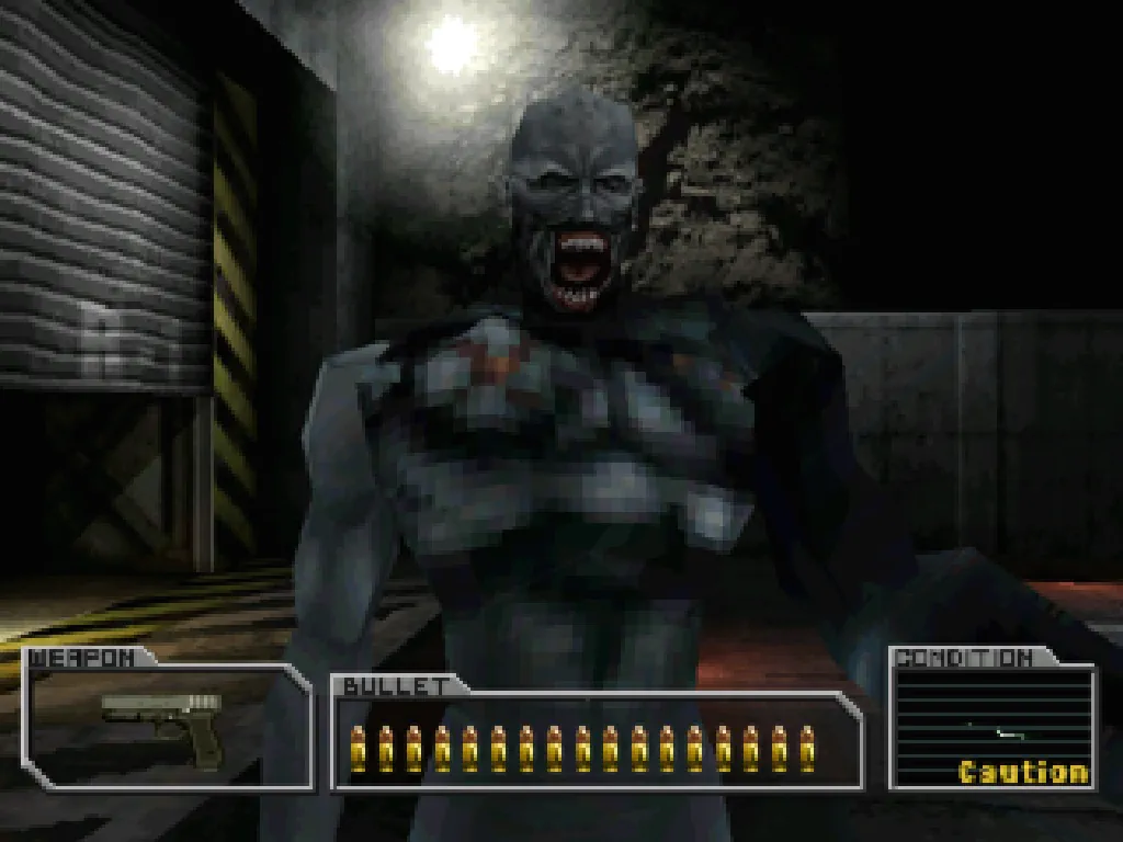 La réalisation est très classique (le tout 3D ne donnera jamais autant le change que des décors précalculés), bien que le jeu soit vraiment très sombre notre spin-off du jour utilise sans doute le même moteur graphique que celui de Dino Crisis, à ceci près qu'il est moins bien maitrisé. Les modélisations sont affreuses et cubiques (après tout, nous sommes sur la première PlayStation), idem pour des décors toujours très sombres, une vieille ficelle de contraste qui vise à cacher la misère (d'ailleurs toute l'aventure se déroule de nuit, comme par hasard). Bien entendu on retrouve tous les travers de la console de Sony, avec des plaquages qui disparaissent selon l'angle de caméra, ou encore des textures atteintes de la maladie de Parkinson. L'ensemble est typique des jeux qu'on trouve sur PlayStation, à ceci près qu'une console en fin de vie est censé montrer le meilleur d'elle-même. Au final le "tout 3D" n'a jamais été le fort de la 32-bits de Sony, et il n'est pas difficile de comprendre qu'avec son atypique gameplay, les développeurs n'avaient pas vraiment d'alternative. Car rien ne remplacera les décors précalculés de la trilogie à succès, qui permettaient d'obtenir des graphismes détaillés qui tiennent encore la route aujourd'hui.