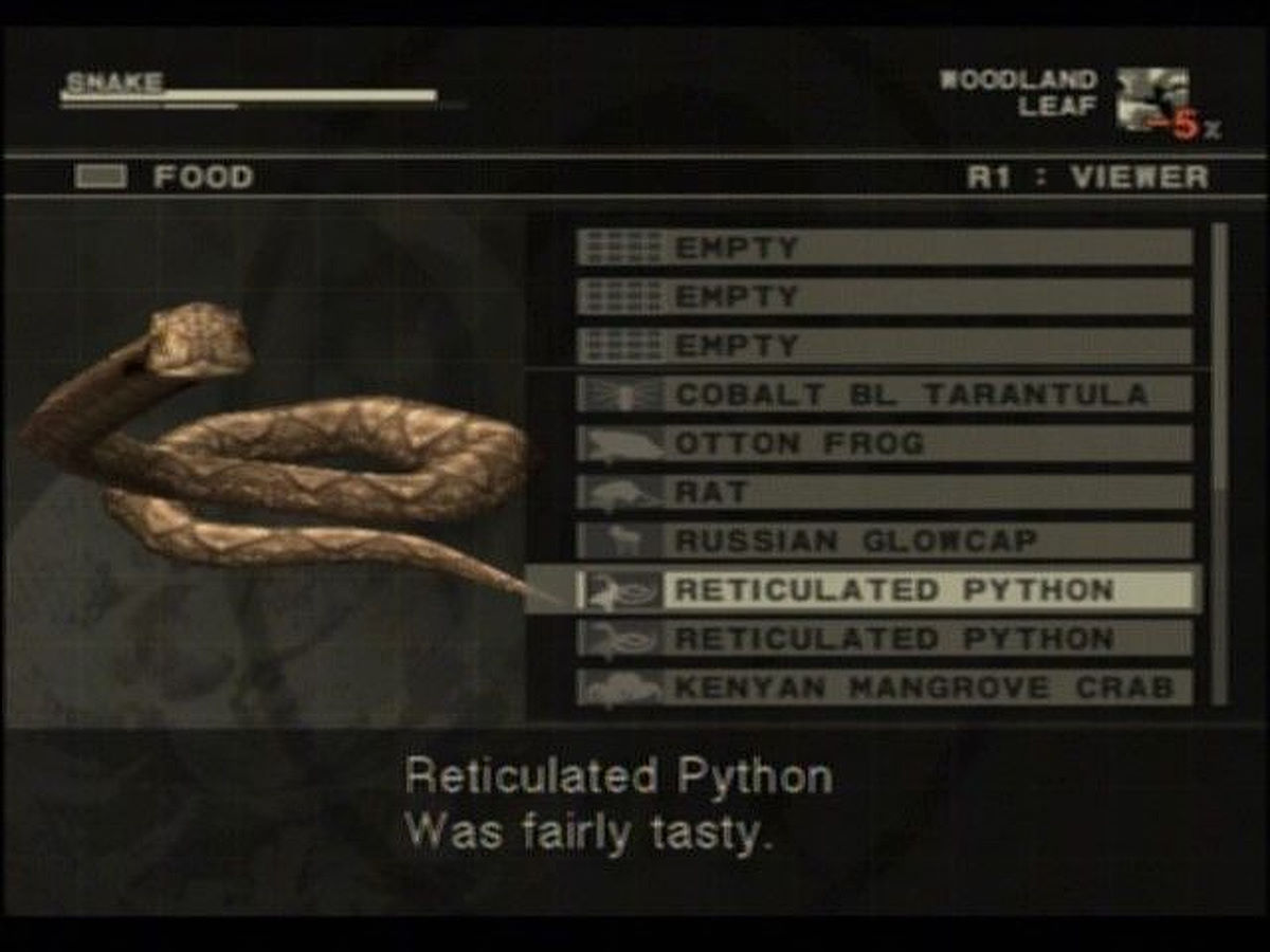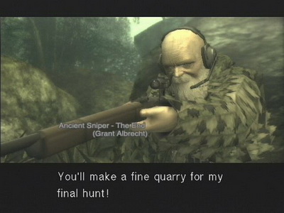 S'en suit la mission Snake Eater (mangeur de serpents), qui de son côté dure pas moins de 15 heures ! Metal Gear Solid 3 est l'actuel épisode le plus long de la saga. Pas d'affront, cette fois nous avons des menus tout en français (c'est le minimum), ainsi que les didacticiels passifs de MGS2. Une nouvelle fois on nous donnera les directives sur le gameplay sans pouvoir s'entrainer. C'est regrettable car je trouvais que l'entrainement était un des points forts du premier opus. Très original par contre, à chaque nouvelle partie on nous demande si on a aimé MGS1 ou MGS2. Auquel cas on débutera soit avec Snake (Naked Snake pour être exact) soit avec Raiden. Mais ce dernier ne dure pas, après tout ce n'est pas son histoire mais celle d'un grand personnage appellé, lui aussi, Snake.