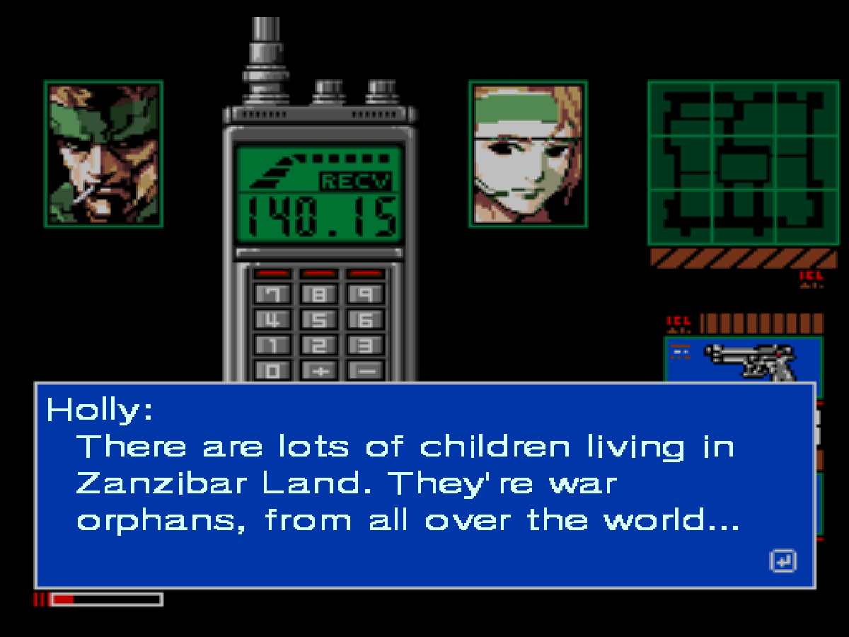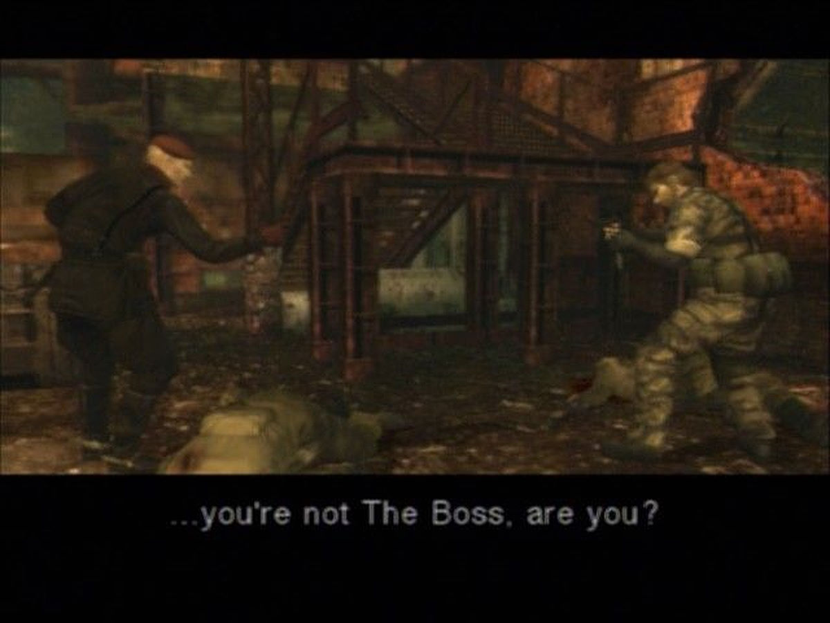Plus encore que Snake, The Boss est un personnage envoutantpuisqu'on parle de Codec, dans cet épisode il est bien moins présent. Tout d'abord il a totalement changé de design en affichant des images fixes (parfois changeables) ainsi qu'un look rétro. Mais moins présent ne veut pas dire que le scénario n'est pas étoffé car en contrepartie, il y a plus de scènes cinématiques.