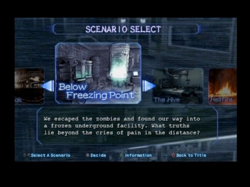 Ceci dit, le jeu n'est pas totalement dénué d'intérêt puisqu'en fait on choisit un personnage (parmi 8) avec 2 coéquipiers gérés par l'IA. Chaque personnage a ses propres facultés comme crocheter des serrures, posséder une arme à feu dès le début ou encore pouvoir emporter plus d'objets. L'idée de base n'est pas mauvaise mais les persos n'ont aucun charisme et prendre par exemple une fille, c'est prendre un perso plus fragile face aux attaques et au virus. Quelques passages changent selon le personnage choisi, avec notamment des cut-scenes différentes. Certains décors visités sont originaux (comme le bar ou l'hôtel) ou tirés des précédents opus (comme l'hôpital ou le labo souterrain). Si on peut pointer le manque d'originalité, il est par contre sympa de revoir d'anciens décors. Les fans apprécieront car ça apporte une autre vision du lieu, avec un scénario parallèle aux grands épisodes.