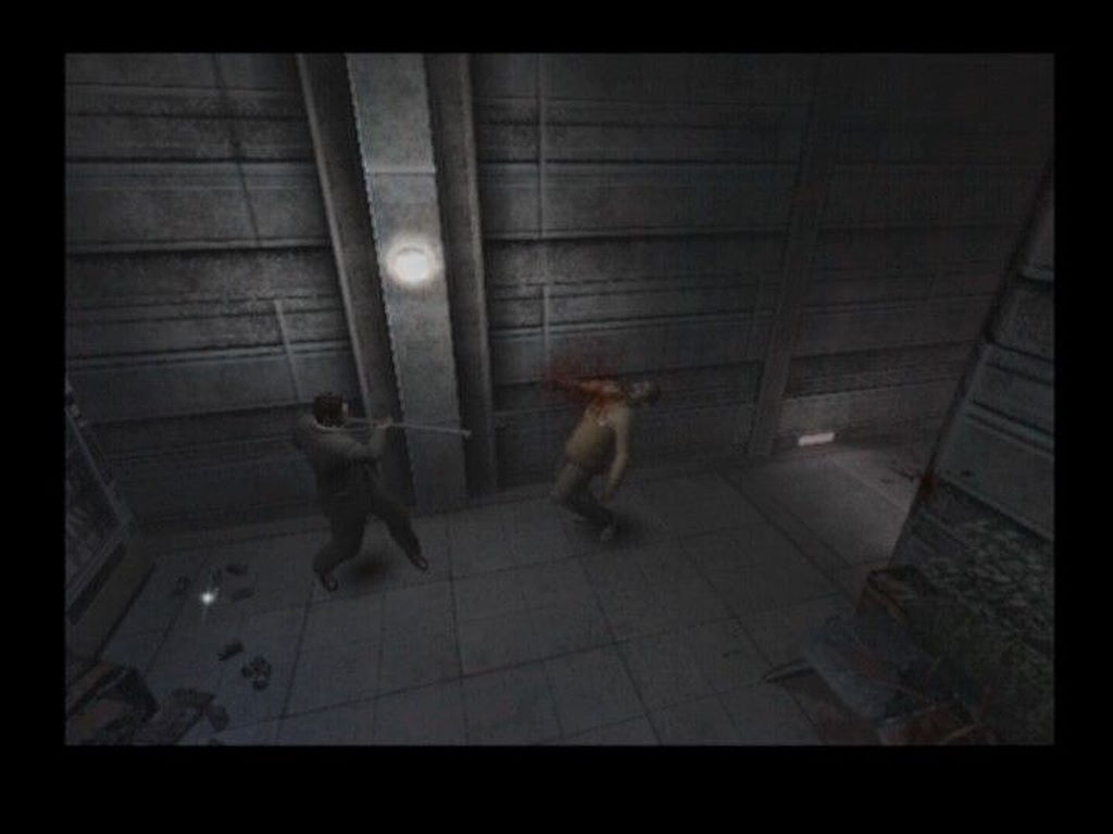 La dernière nouveauté d'Outbreak, c'est que les armes sont rares, on nous force donc à privilégier la débrouille à l'attaque de front. A la manière d'un Silent Hill, l'idée c'est que n'importe quel objet peut servir d'arme : balai, pelle, clé à molette... sont autant de moyen de se défendre. En plus, ces armes de fortune ont, en quelque sorte, une durée de vie et une efficacité prédéfinie. Dernière chose là dessus, vous pouvez échanger divers objets avec vos partenaires, s'ils le veulent (parfois ils refusent, surtout si on ne leur a pas prêté main-forte). Cet aspect repris de Resident Evil Zero est assez sympa mais une fois encore, l'IA fait souvent n'importe quoi, du genre un gars à la clé pour ouvrir la porte de sortie mais il refuse d'ouvrir la-dites porte et refuse de vous donner la clé. Résultat : tout le monde meurt !