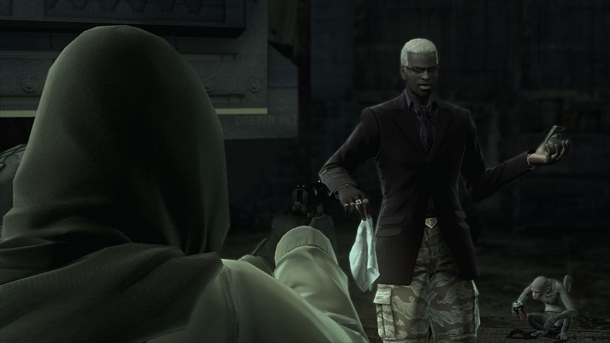 Pour résumer, Drebin joue le même rôle que le marchand d'armes de Resident Evil 4. Evidemment tout se monnaye, et l'argent c'est Drebin lui-même qui nous le fournit. En récoltant des armes qu'on possède déjà, on les revend automatiquement au marchand qui nous donne en échange des "DP" (Drebin Points). Avec ces DP, on pourra se payer le déverrouillage de certaines armes, acheter des munitions et même des upgrades pour nos armes acquises (par exemple, acheter une poignée pour le M4 améliore la stabilité). De même, les silencieux sont toujours aussi fragiles et il faudra régulièrement s'en payer d'autres si on veut rester discret. On peut d'ailleurs en prendre plusieurs d'avance, Snake ayant l'intelligence de le changer tout seul dès qu'ils cassent.