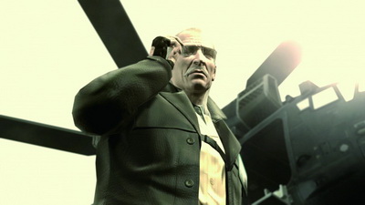 Autre point sensible, l'intro offre une séquence pour le moins déroutante. On peut zapper entre plusieurs chaînes, y voir une propagande pour la guerre et la nano-technologie. Laissant un goût bizarre, le véritable prologue s'en suit, celui qui ouvre l'aventure. Toujours est-il qu'on peut légitimement se demander à quoi peut bien servir cette étrange cinématique. Metal Gear Solid 4, en plus de nous livrer les réponses à toutes les questions restées jusque-là en suspend, assure un fan-service remarquable avec le retour des figures emblématiques (et encore vivantes), qu'on n'avait pas revu depuis très longtemps : Raiden, la belle Meryl, Naomi Hunter, Mei Ling, Rosemary, Colonel Campbell, Vamp, Akiba (le gars qui a toujours la courante dont on voit pour la première fois le visage) et bien sûr Ocelot (ici sous la forme Liquid Ocelot). On prendra même de gros flashs lorsque Snake rencontrera certains personnages connus et qu'on en apprendra beaucoup sur son passé.