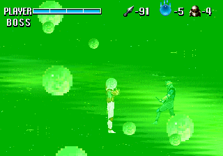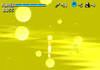 Et puis il y a également les 3 grandes différences entre la version NTSC (Etats-Unis/Japon) et PAL (Europe). Côté NTSC nous avons une plus grande barre de vie, un jeu légèrement plus rapide (60hz oblige) mais aussi et surtout des double-sauts qui sortent bien plus facilement. En contrepartie, les musiques sont vraiment banales, tout droit sorties d'un jeu japonais lambda dont personne ne se souvient du nom. Pourquoi ne pas avoir embauché Yuzo Koshiro pour l'OST ? Ou alors le trio qui a pondu les très bonnes musiques du 3e opus ? De son côté, la version PAL Euro profite d'une très bonne bande-son composée spécialement pour elle, et en contrepartie, les double-sauts sont un enfer à gérer ! A croire que tout a été fait pour que cette version soit nettement plus difficile que l'autre.