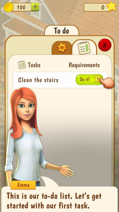 Les travaux de rénovation sont naturellement "guidés" afin de ne pas perdre le joueur face une masse écrasante de travail. On va donc commencer par rénover la devanture du manoir (petit coin à fleurs et porche extérieur), puis l'intérieur, pièce par pièce et parcelle de terrain par parcelle de terrain. Pour se faire le joueur va devoir gagner des étoiles et ces étoiles permettront à Emma de réaliser une tâche (comme planter des fleurs, réparer une fenêtre, décorer une pièce). Les étoiles s'obtiennent grâce à un jeu d'anagrammes de mots. Au fil des épreuves, le joueur va pouvoir avancer tout doucement dans sa rénovation, pièce après pièce : refaire les murs et tapisseries, refaire les sols, installer des meubles ou encore créer un nouvel escalier...
