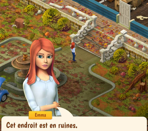 Mais reprenons plus en détails. Le jeu commence par une scène qui nous raconte qu'Emma (notre personnage - une fille rousse aux yeux verts d'une vingtaine d'années) a hérité du manoir de ses grands-parents et qu'elle doit le rénover à son goût pour en faire son foyer dans la ville de Wordington. Elle commence donc à rénover le manoir ainsi que ses extérieurs pour redonner vie à cette propriété qu'elle a toujours connu dans son enfance. Emma et quelques-uns de ses acolytes (amis d'enfance et habitants de Wordington) se lancent dans les travaux de cet endroit qui a grand besoin (du moins au début) de rénovations. De plus, la décoration laisse à désirer puisqu'elle va retrouver le design et les objets de ses grands-parents. Il faut donc remettre toute la déco aux goûts du jour... en somme, selon vos critères.