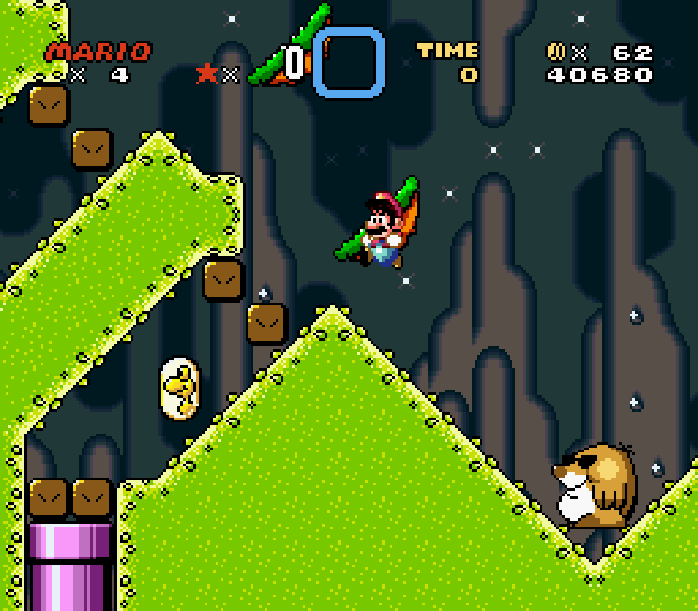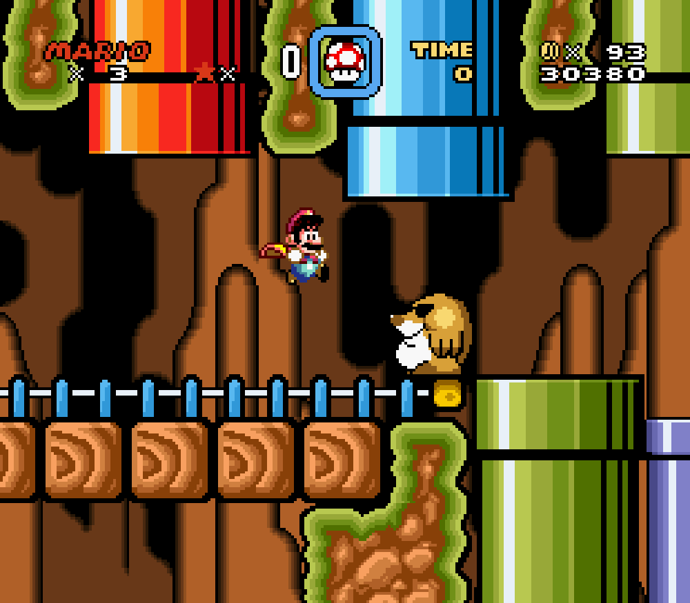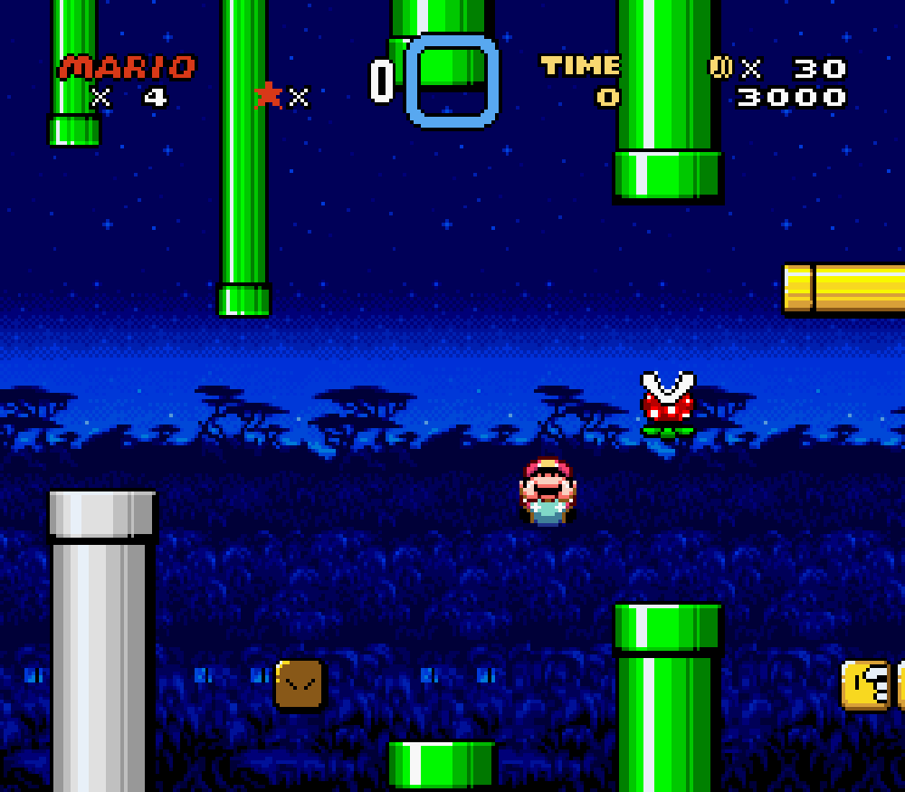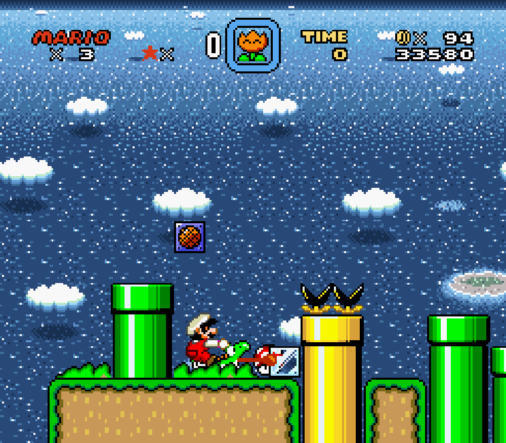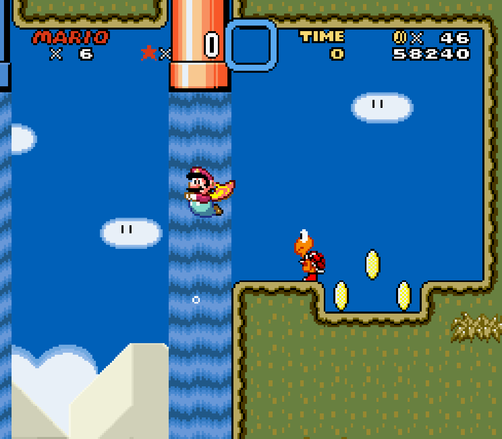 Taupe Land (monde 3) : dans un sous-niveau, Mario apparaissait comme descendant d'un tuyau mais le tuyau n'était pas là... Je trouve étrange de ne pas avoir vu cette erreur avant.