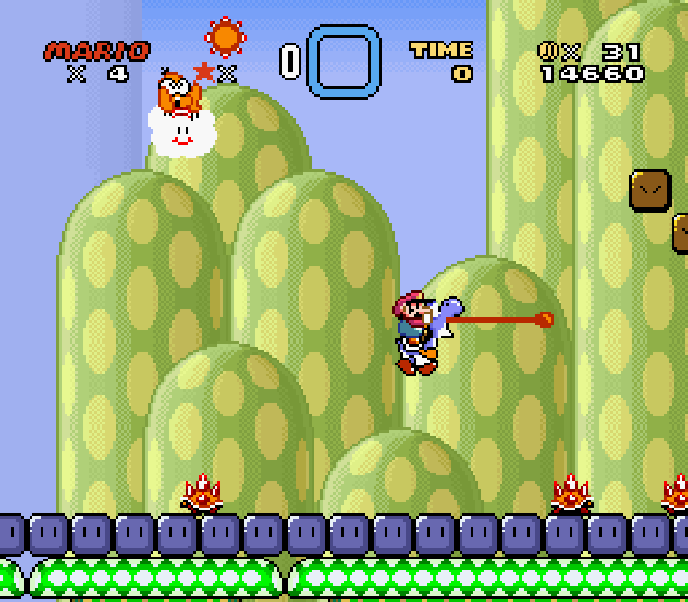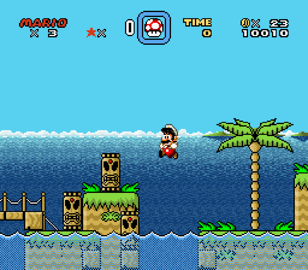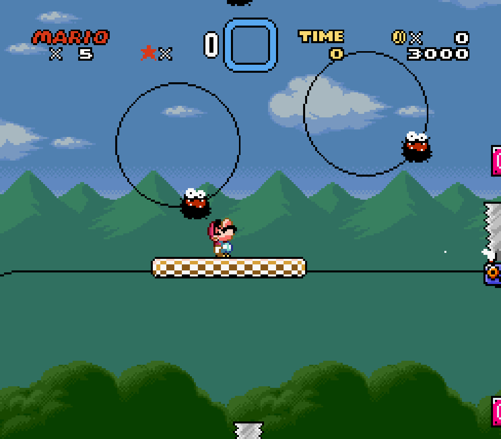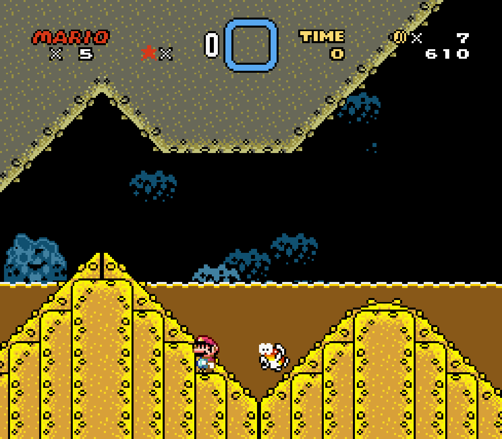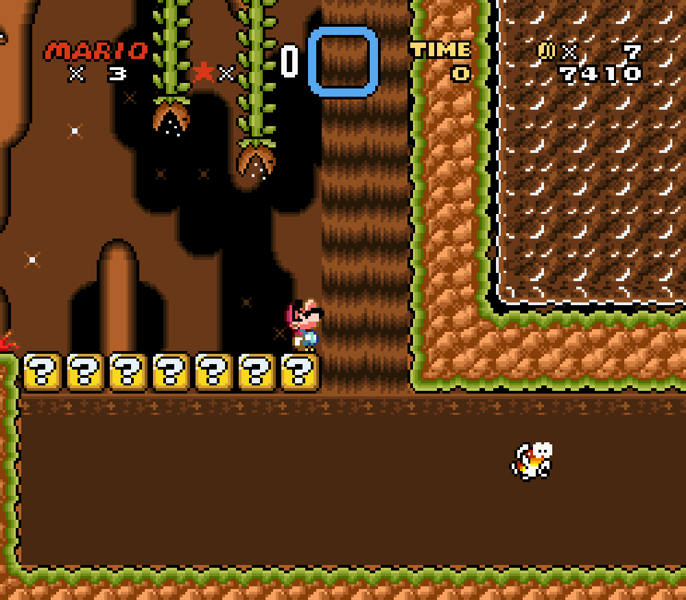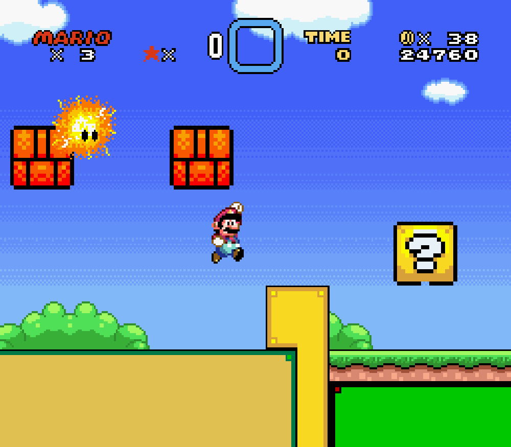 Taupe Land (monde 3) : dans un sous-niveau, Mario apparaissait comme descendant d'un tuyau mais le tuyau n'était pas là... Je trouve étrange de ne pas avoir vu cette erreur avant.