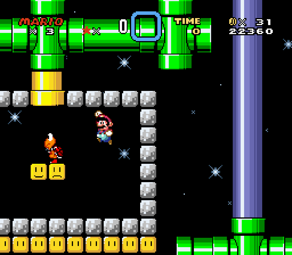 Etant donné qu'on a supprimé définitivement le timer, il a fallu modifier le Switch Palace jaune, unique level avec du temps...
