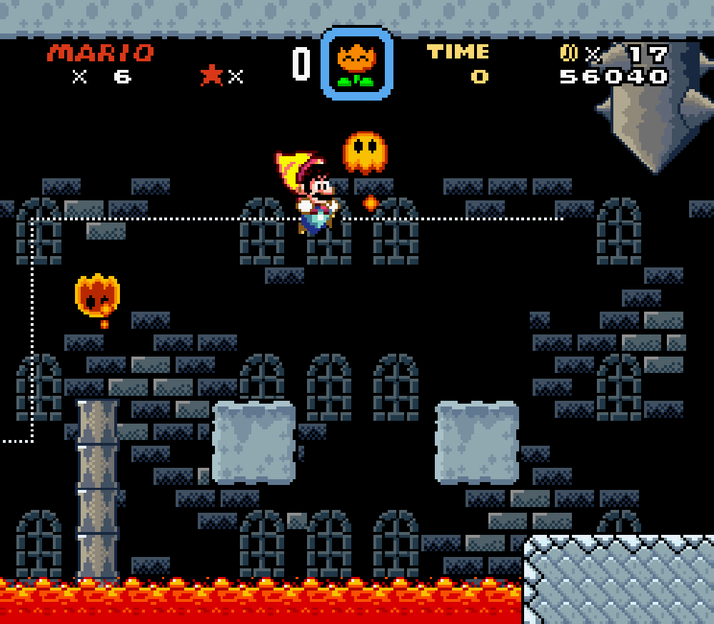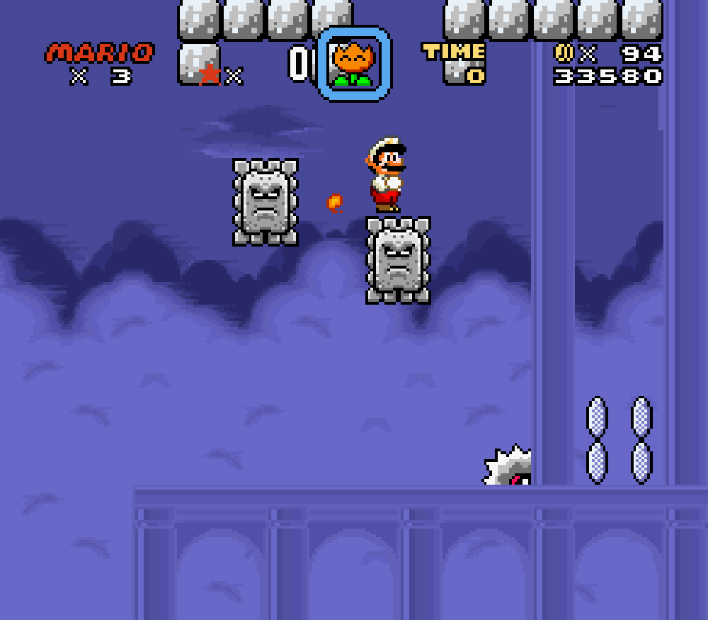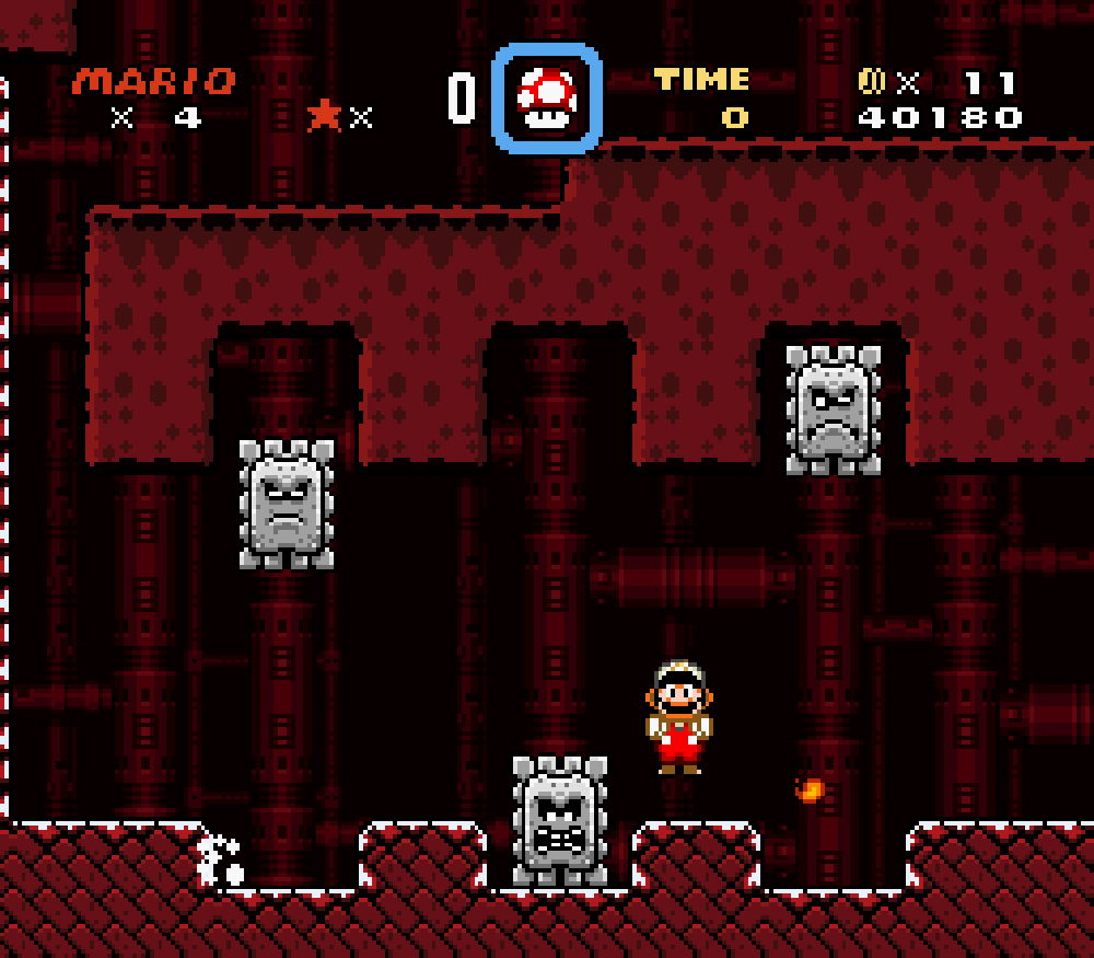 Le château de Wendy (monde 6) : modification d'un petit détail du décor (un bloc dépassait... le vilain).