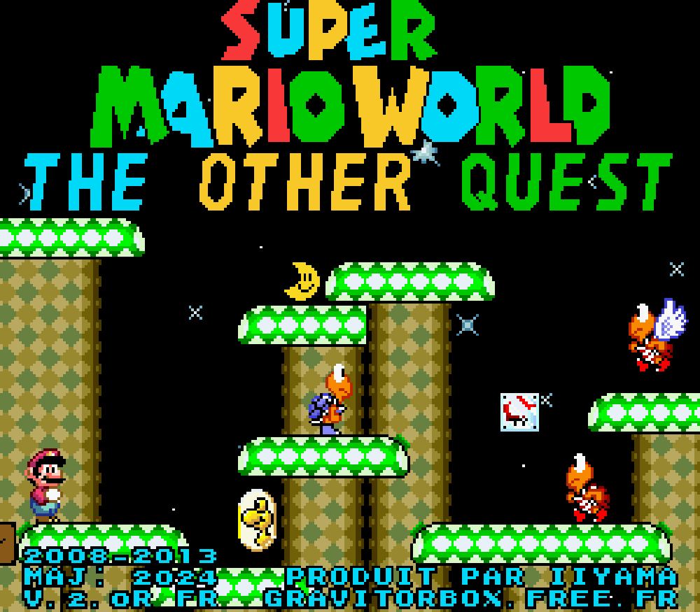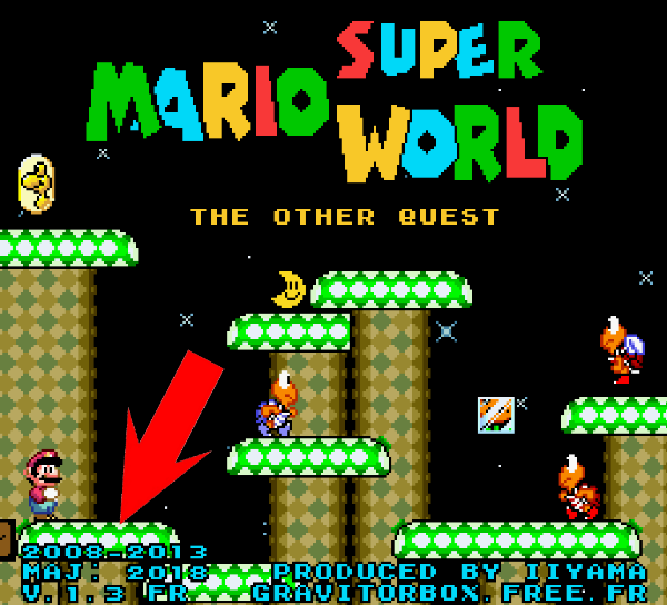 Après presque 5 ans de développement, Super Mario World : The Other Quest sort enfin au grand jour, en ce beau mois d'aout 2013 ! Le jeu a été testé des centaines de fois, en long, en large et en travers mais on est jamais à l'abris de divers bugs, de plus on a toujours quelque chose à corriger ou une nouveauté à implanter au fil du temps. Et des bugs, le jeu original en était truffé, et malgré tout le soin qu'on a apporté à notre développement, et malgré les mises à jour, il peut encore en rester (après sachez que certains glitches sont inévitables car en plus de ça, chaque émulateur réagit un peu différemment selon la situation). Ceci dit en plus de 4 ans, le jeu a atteint un haut degré de finitions ! Chaque recoin a été pensé et repensé, testé et retesté des dizaines de fois pour que la difficulté soit équilibrée et que le joueur ne subisse pas de bugs désagréables, comme traverser le décor et perdre une vie bêtement. Sur un niveau qui dure une minute tout au plus, c'est déjà pénible, mais vu que certains de nos levels demandent plus de 10 minutes de jugeotte et d'exploration, il fallait éviter ça à tout prix !