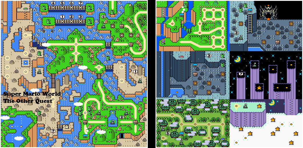 Ainsi, nous sommes heureux de vous proposer "notre création", nos trouvailles de gameplay et de level design, ainsi que nos idées (même si encore une fois, il est possible que vous retrouviez certains concepts ailleurs... mais ce ne serait que pure coïncidence). En bref, entre les nouveaux décors, des niveaux totalement récrées, le nouvel overworld, les nouvelles musiques et quelques concepts originaux, il est clair que vous allez entièrement redécouvrir ce bon vieux Super Mario World. Et c'est même le but puisque The Other Quest est en quelque sorte la "suite non-officielle" de l'épisode original.