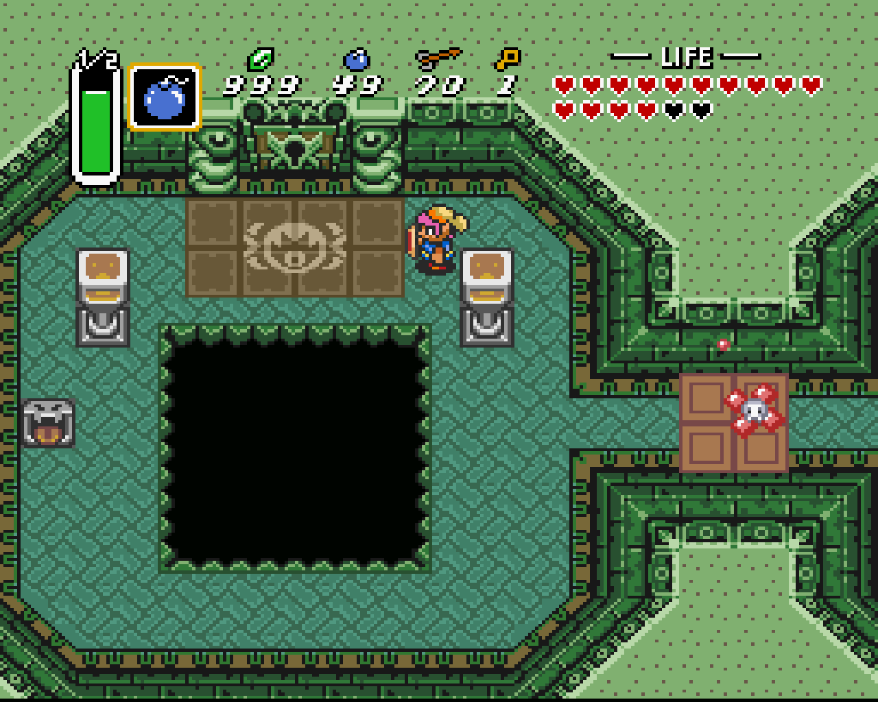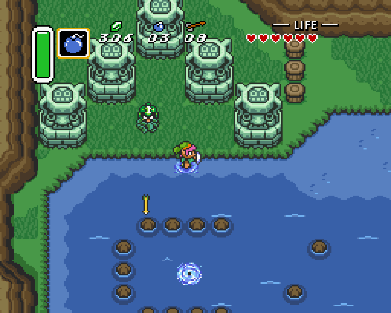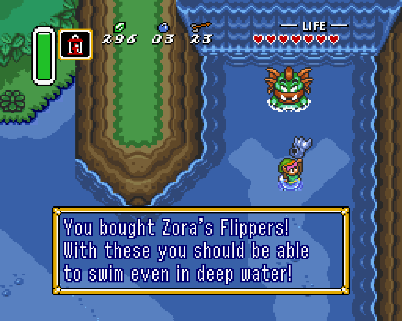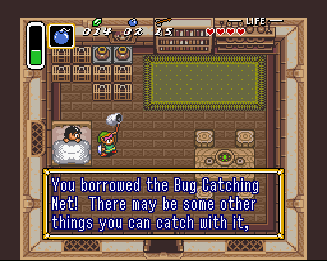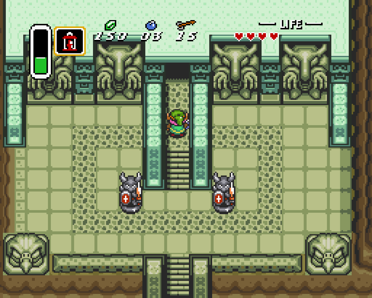 Alors certes, l'arc et les flèches, les bombes et le boomerang sont directement issus de l'épisode fondateur, d'ailleurs en connaissant bien cet épisode-là, on sait quoi faire face à un mur ébréché et on sait comment vaincre Ganon. Maintenant il faut être de sacrée mauvaise foi pour prétendre que cet épisode majeur n'a pas apporté une grande partie des bases dont la série se sert même plus de 30 ans après ! Des règles qui sont devenues des institutions, et on apprécie également de grandes améliorations depuis les épisodes NES comme le fait de pouvoir marcher en diagonales, de frapper en quart de cercle, de tirer/pousser des objets, ou encore la fameuse attaque tournoyante. Il est clair qu'en passant de 8 à 16-bits, il n'y a pas que les graphismes qui ont largement pris du galon.