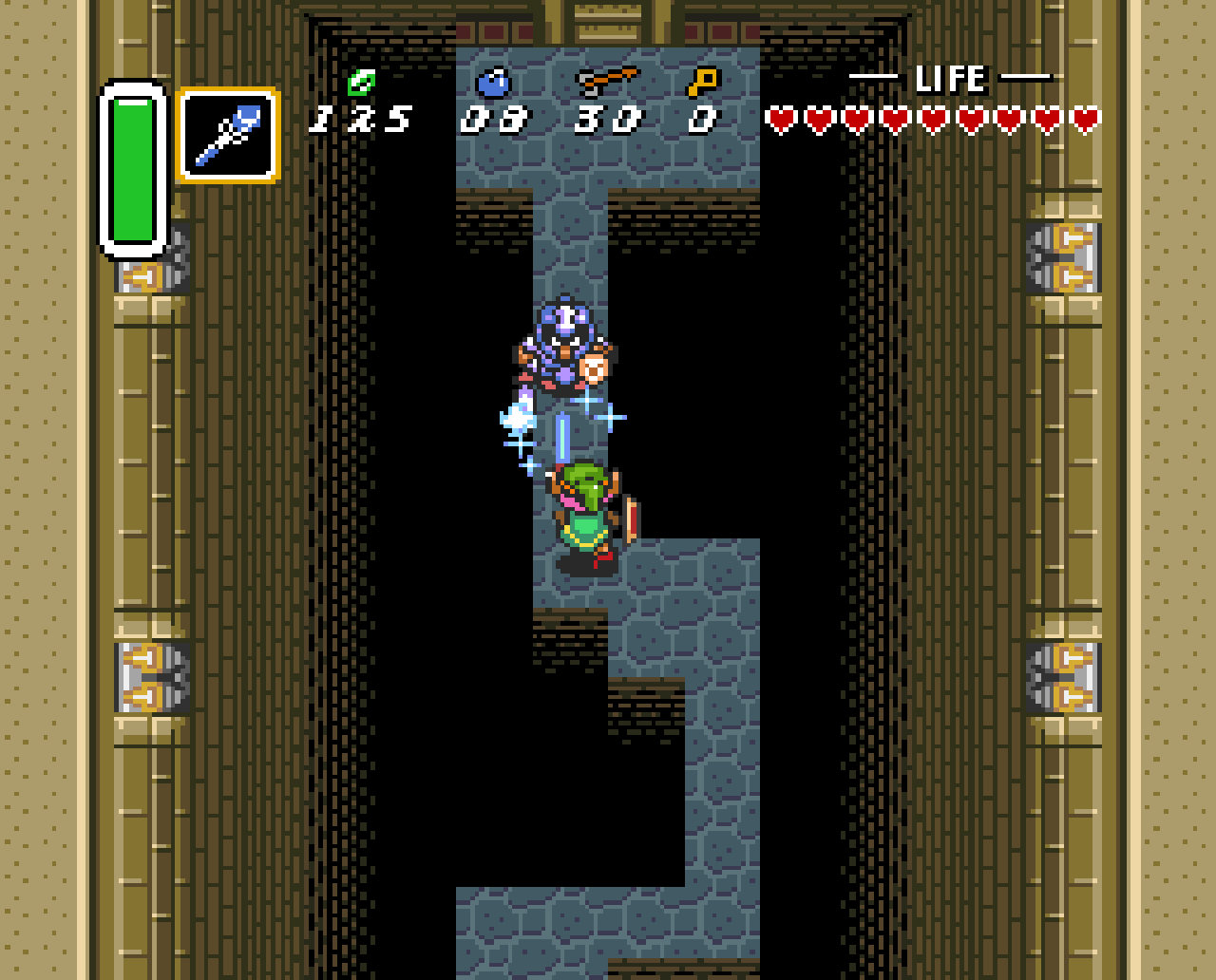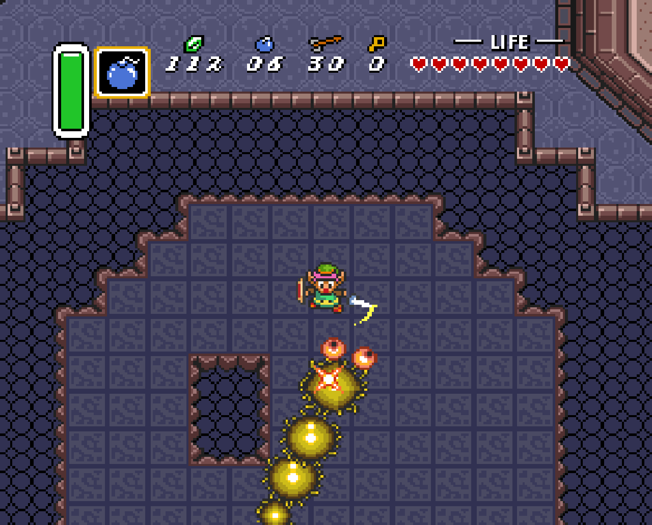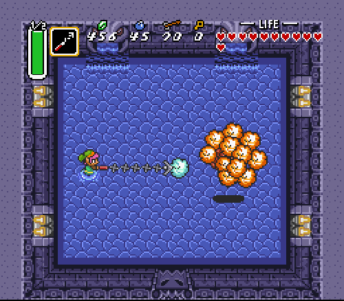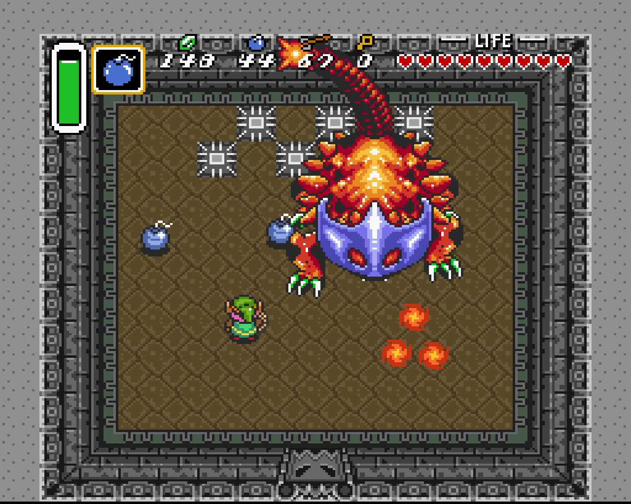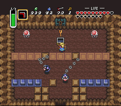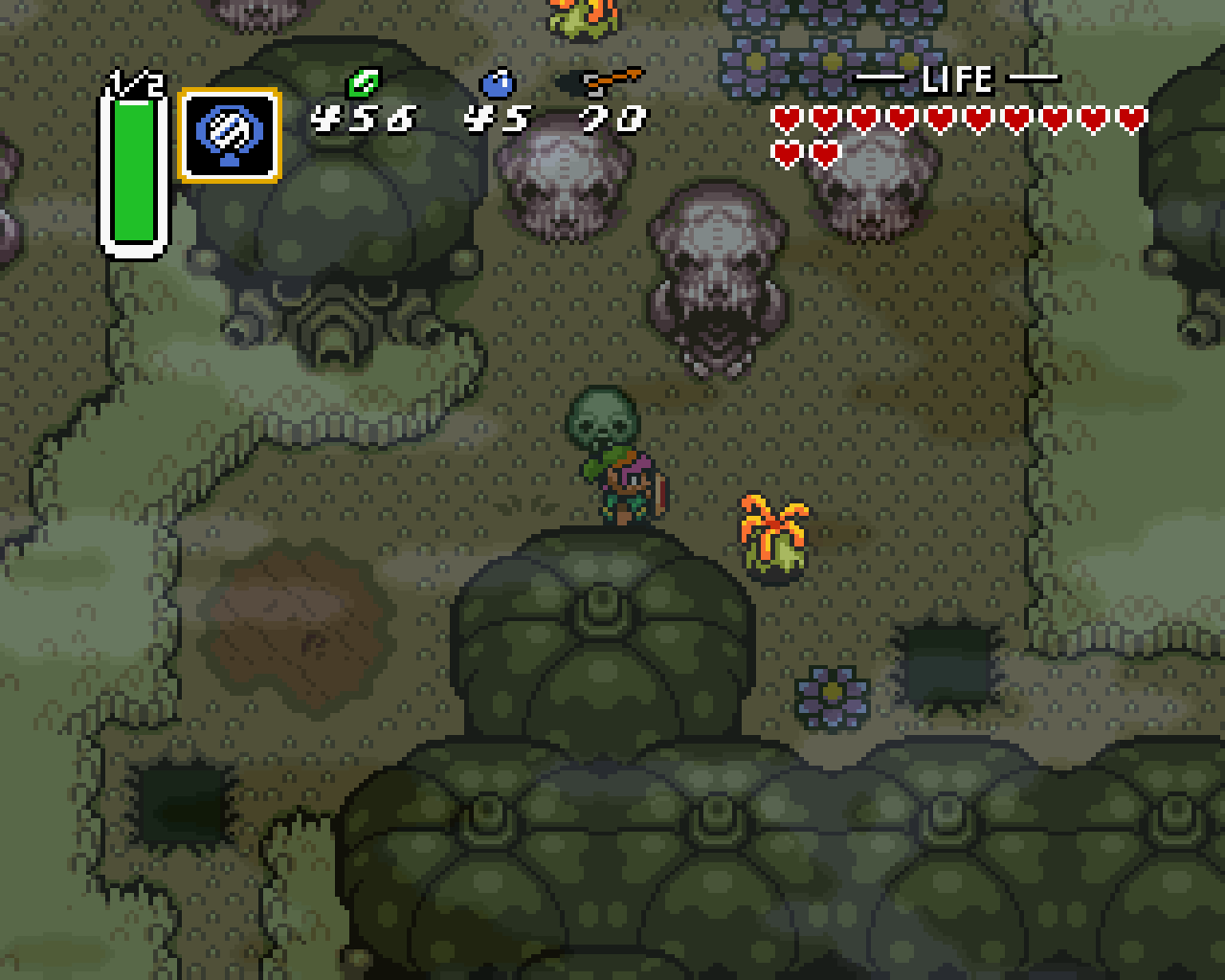 Alors certes, l'arc et les flèches, les bombes et le boomerang sont directement issus de l'épisode fondateur, d'ailleurs en connaissant bien cet épisode-là, on sait quoi faire face à un mur ébréché et on sait comment vaincre Ganon. Maintenant il faut être de sacrée mauvaise foi pour prétendre que cet épisode majeur n'a pas apporté une grande partie des bases dont la série se sert même plus de 30 ans après ! Des règles qui sont devenues des institutions, et on apprécie également de grandes améliorations depuis les épisodes NES comme le fait de pouvoir marcher en diagonales, de frapper en quart de cercle, de tirer/pousser des objets, ou encore la fameuse attaque tournoyante. Il est clair qu'en passant de 8 à 16-bits, il n'y a pas que les graphismes qui ont largement pris du galon.