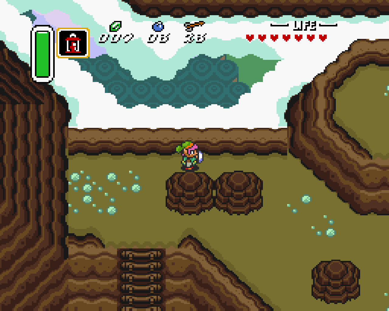 Zelda III offre une vue semblable à celle du premier opus, à savoir qu'elle est exclusivement de dessus (avec une légère inclinaison), profitant ainsi de subtils effets de profondeur. D'ailleurs les level designers en ont profité pour jouer avec les perspectives afin de proposer 2 niveaux de profondeur. Les graphismes sont vraiment beaux, détaillés et usent d'une coloration parfaite. Certes, si aujourd'hui vous y jouez sur une immense télé HD, vous verrez quelques imperfections, quelques faux raccords, mais pensez bien qu'à l'époque on jouait sur des télés à tube cathodique, dont l'image était légèrement floue (si si elle l'est, commencez pas à me chercher ^_^). Il y avait aussi l'effet des "scanlines", donc forcément, le rendu était un peu différent. Mais clairement, à sa sortie entre 1991 et 1992 selon le territoire, Zelda III nous a assené une jolie petite claque.