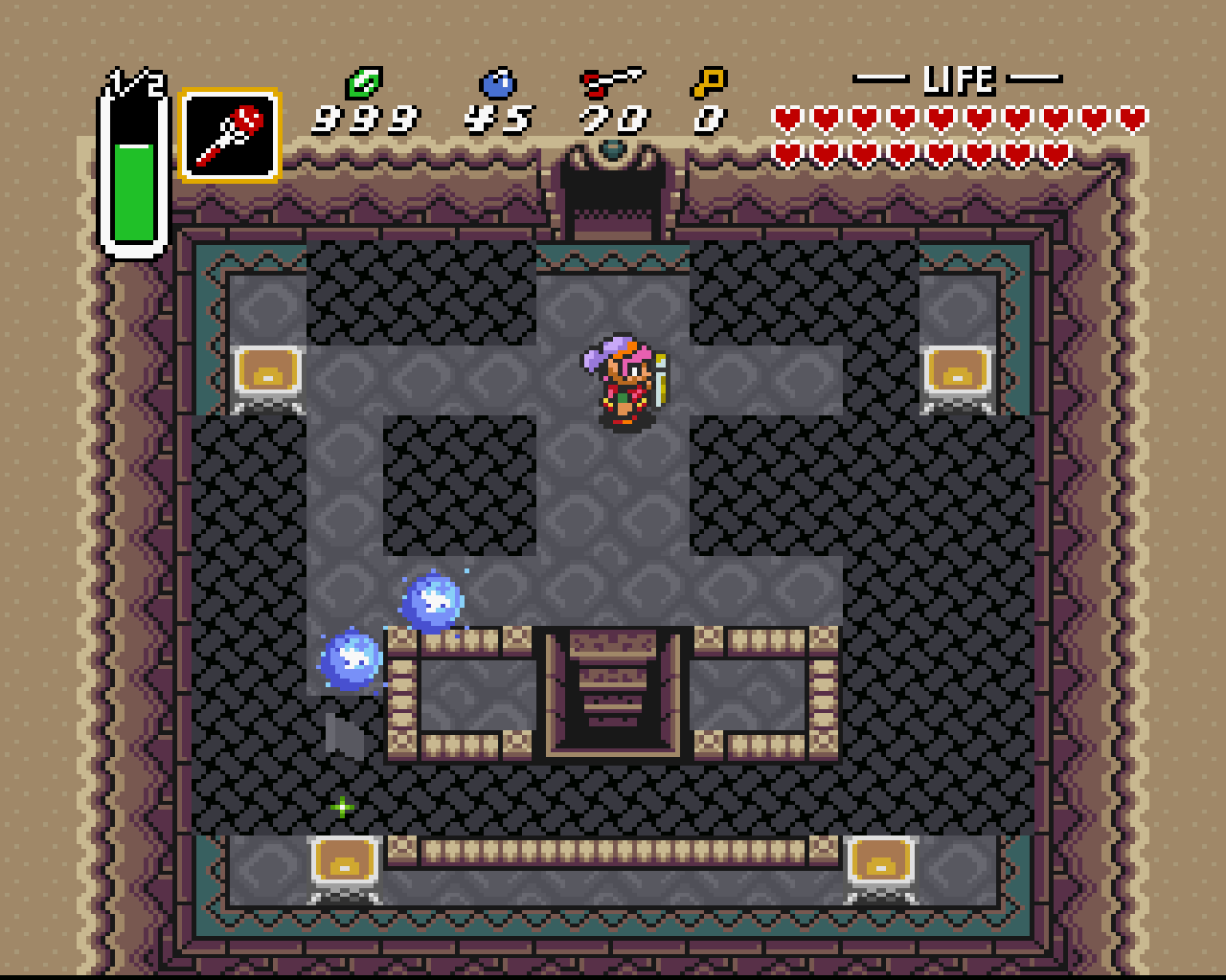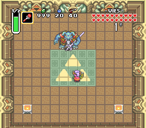 On sent bien la montée en puissance de notre personnage dans cette aventure qui est aussi longue que passionnante pas forcément évident, mais les développeurs ont fait preuve d'une remarquable ingéniosité avec un monde pseudo-ouvert où on peut aller presque partout, l'obtention de nouveaux objets nous aidant à aller toujours plus loin. Comme évoqué, les débuts sont relativement faciles, on peut même dire que les 3 premiers véritables donjons (ceux où nous devons trouver les pendentifs) servent encore de mise à l'épreuve et d'apprentissage. Puis on récupère Excalibur, prêt à en découdre avec Agahnim pour finalement s'apercevoir qu'on est qu'au tout début de l'aventure !