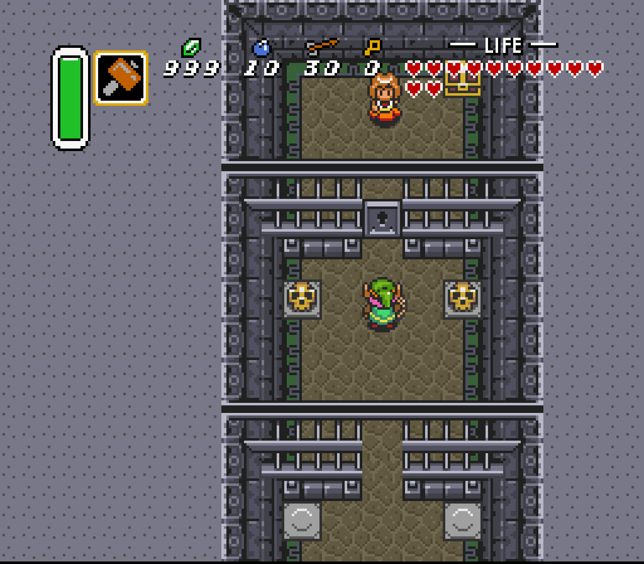 Seul bémol finalement, la musique des donjons est trop courte et elle tourne en boucle durant des heures au point de devenir insupportable j'émettrai tout même un bémol et non des moindres envers la musique des donjons. Il n'en propose que 2 variantes or il existe pas moins de 13 donjons (le premier château se fait en 2 fois distinctes, puis les 3 pendentifs, les 7 cristaux et enfin la tour de Ganon) et dans chacun, nous passons entre 30 minutes et 1 heure en moyenne. Et tout le problème est là : la musique des donjons est certes très bien composée, donnant à la fois un rythme et une ambiance souvent lugubre, la tuile c'est qu'elle tourne rapidement en boucle ! Alors certes, ce n'est en rien comparable au thème des donjons du premier Zelda, qui était à la fois hypnotique et particulièrement saoulant, ceci dit, ici aussi on atteint rapidement notre limite.