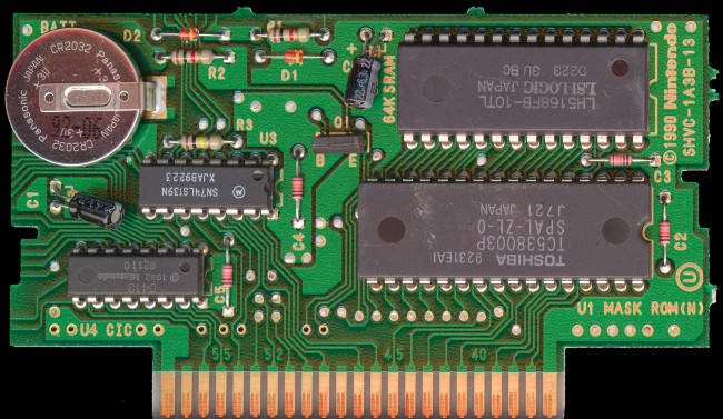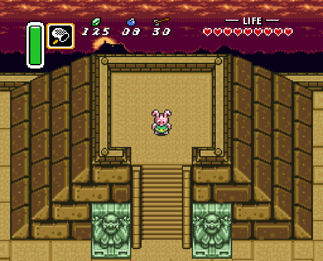 Etonnamment, Zelda III tient sur une cartouche d'à peine 8 Mb... nous sommes en 1991 et les cartouches de 8 Mb sont rapidement devenues la norme, étant donné que les cartouches de 4 Mb limitaient trop les développements. Ceci dit, Zelda III utilise la même méthode d'optimisation des données que Super Mario World, en limitant le nombre de tuile et en les réutilisant au besoin. On peut facilement l'observer lorsqu'on fait la différence entre le Monde de Lumière et celui des Ténèbres, qui utilisent le même design, seules les couleurs changent. Idem pour certains ennemis, qui changent de couleurs et de comportement, faisant ainsi 2 antagonistes différents à moindre frais. Grâce à ces optimisations, Zelda III ne dispose que d'une cartouche de 8 Mb, là où on aurait légitimement pu s'attendre à une ROM de 12 Mb (rappelons que la première cartouche de 16 Mb fut mise à disposition pour Capcom et son superbe Street Fighter II, sorti en juin 1992 au Japon). Oui je l'avoue, il est étonnant de voir qu'un jeu aussi grand, aussi long et aussi travaillé, soit contenu dans si peu de place.