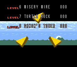 D'ailleurs, vous vous doutez bien que le Monde de la Lumière ne sera pas définitivement évincé de l'aventure, car grâce au miroir magique, vous pourrez passer d'un monde à l'autre, avec parfois même des événements dans l'un qui influencent l'autre. Le but final étant bien évidemment d'affronter Ganon, dans un combat aussi épique que difficile. Au bout du compte, la durée de vie tourne aux alentours de 15 à 17 heures de jeu (ce qui est assez énorme à cette époque où l'Arcade faisait encore office de maitre-étalon et que les durées de vie excédaient difficilement les 2 heures), voilà pourquoi la cartouche inclus un système de sauvegarde où vous pourrez conserver 3 aventures distinctes.