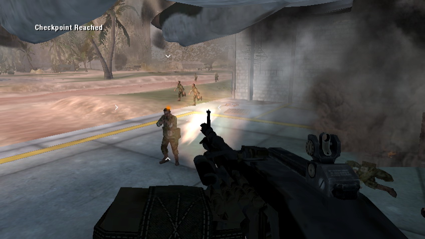 Modern Warfare 2 faisant encore école, il ne sera pas rare de suivre une action au ralenti, afin de souligner l'intensité de celle-ci, ou de nous laisser le temps de viser. On ne peut transporter que 2 armes, plus des grenades mais l'arsenal change automatiquement au gré des scripts (et sans qu'il y ait une quelconque pause au milieu). Exemple, au Vietnam, on part avec un couteau et un AK-47, et boum d'un coup on se retrouve avec un fusil de sniper et un M16. C'est complètement débile ! C'est quoi ces tours de magie ? Comme toujours sur cette série, on vivra quelques scènes originales comme cette course poursuite à moto très inspirée de Terminator II (le M1887 Remington aidant fortement à s'y identifier), la ballade en Jeep équipé de missiles guidés ou mieux encore avec ces phases de shoot à bord d'un Hind, vraiment sympa.