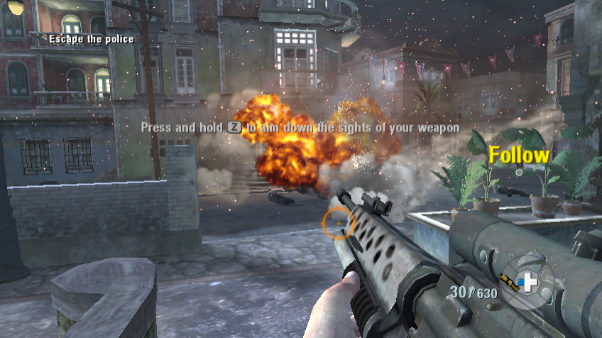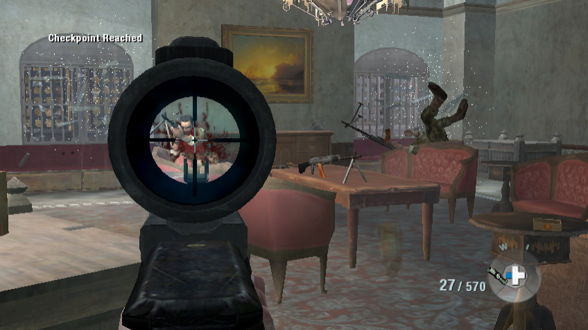 Enfin un FPS jouable sur Wii, ça fait plaisir ! En plus, cette fois on peut jouer avec la manette classique... un régal ! est-il qu'on entrera surtout dans la peau d'Alex Mason (personnage principal de cette histoire), pour revivre une partie de sa vie. Séquestré et torturé, de sombres individus le forcent à dévoiler ce qu'il sait, et à revivre certaines journées-clé de sa vie (les scènes font penser à la fois à Matrix et à SAW... jouez-y, vous comprendrez). Durant la Guerre Froide, la première mission de Mason est de tuer Fidel Castro, lors de la tristement célèbre "crise des missiles de Cuba" : 1962, des missiles nucléaires soviétiques pointés sur le territoire des Etats-Unis depuis l'île de Cuba, a placé le monde au bord de la guerre nucléaire. Du coup le jeu a été interdit sur l'archipel, puisque de nombreuses tentatives de ce genre ont réellement existé et le gouvernement cubain ne veut pas que ça fasse de vagues.